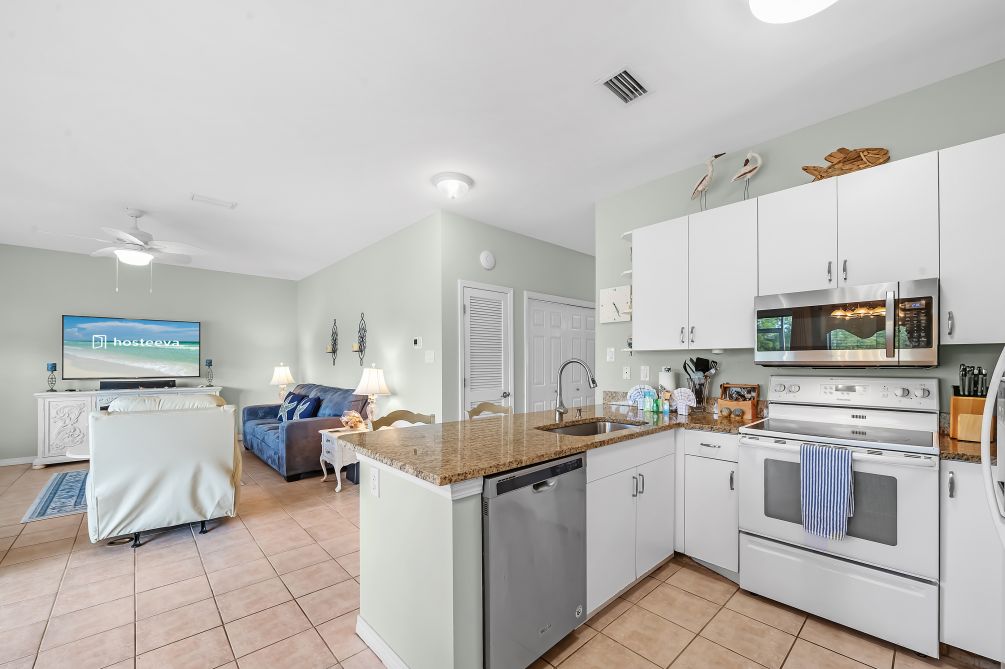As you enter, you'll be greeted by a bright and open living area, featuring a smart TV with cable channels, ideal for relaxing after a day at the beach. The fully equipped kitchen has everything required to prepare your favorite dishes, including modern appliances, generous counter space, and all the necessary cookware and utensils. Enjoy your meals at the dining table or step out onto the private balcony to sip your morning coffee or evening drinks while soaking in the refreshing sea breeze.