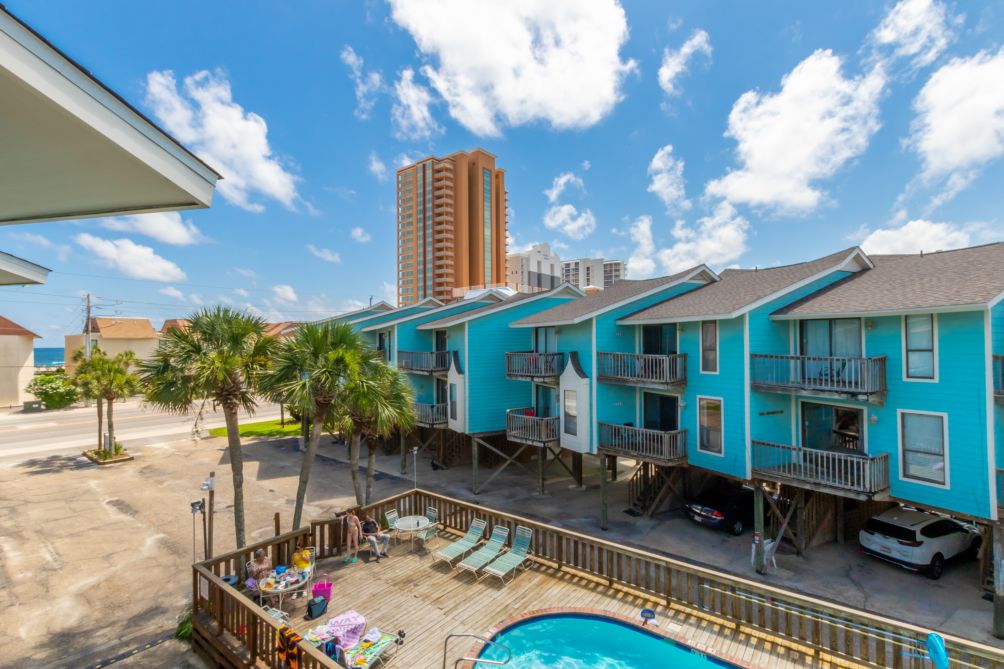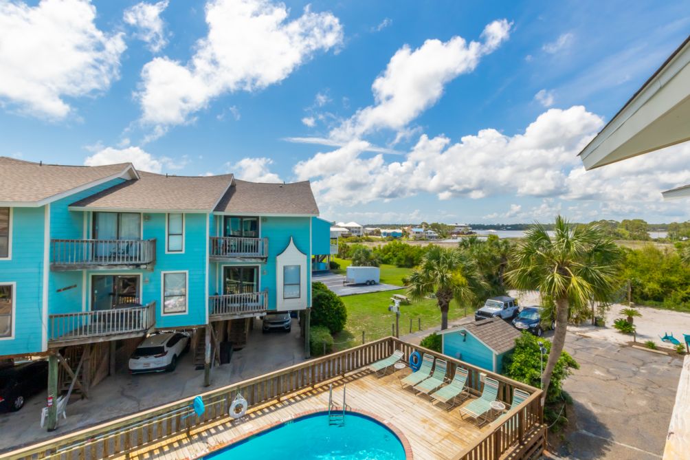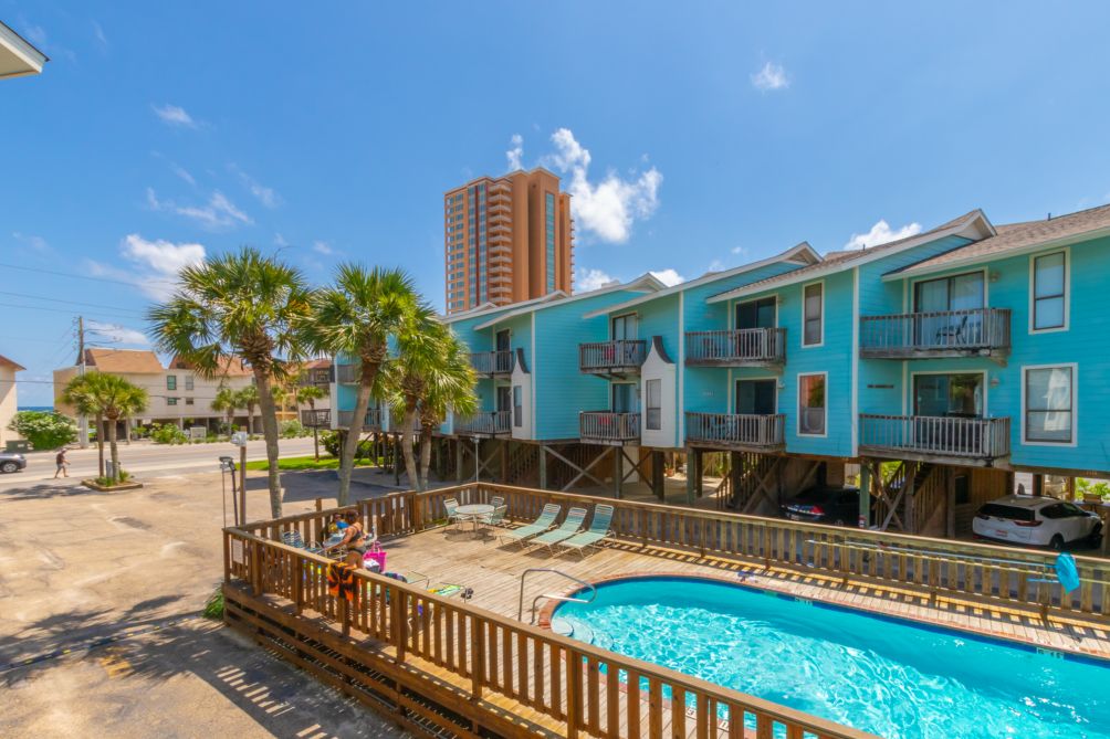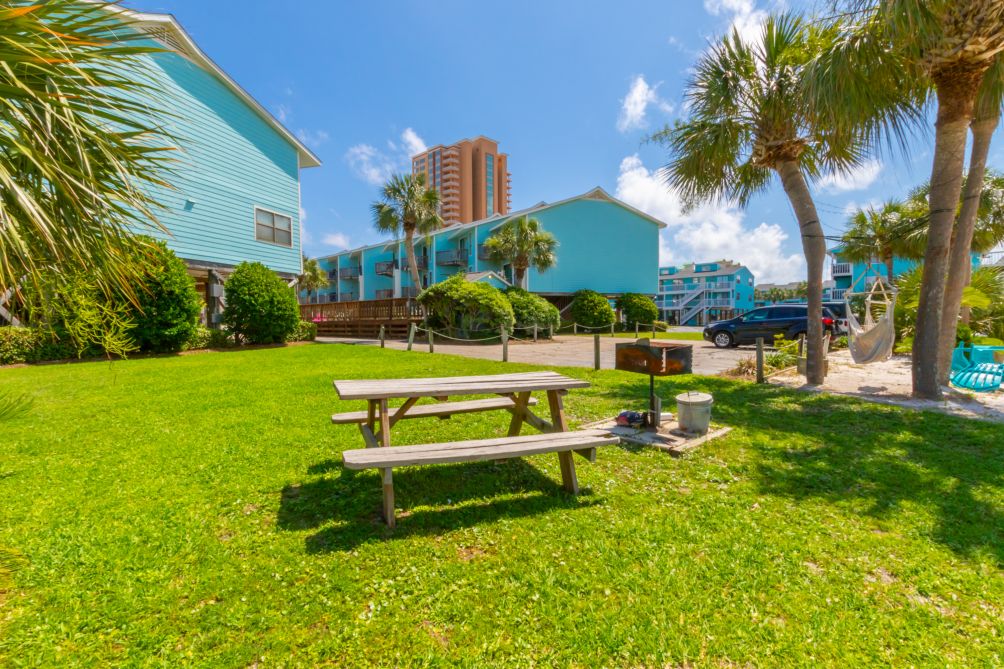Outside, the condo community features shared amenities including a grill area and outdoor pool, perfect for laid-back gatherings and sunny afternoons.