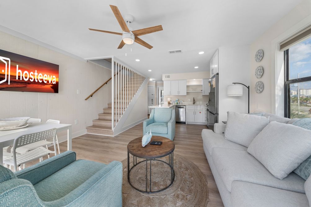 Inside, the fully equipped kitchen invites you to prepare delicious meals and snacks, while the living area provides a relaxing space to unwind after a day of exploration. Whether you're catching up on your favorite shows or simply enjoying each other's company, this space is yours to make memories.