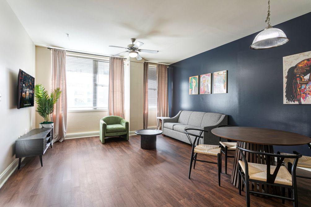 Nestled within a 5-minute stroll from the iconic French Quarter, this exceptional living spacein the heart of New Orleans offers a tasteful and fully furnished interior, creating a harmonious blend of modern comfort and the rich cultural tapestry that the city is celebrated for.