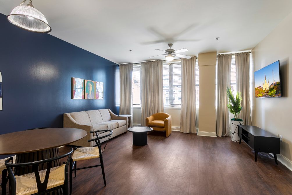 Nestled within a 5-minute stroll from the iconic French Quarter, this exceptional living spacein the heart of New Orleans offers a tasteful and fully furnished interior, creating a harmonious blend of modern comfort and the rich cultural tapestry that the city is celebrated for.
