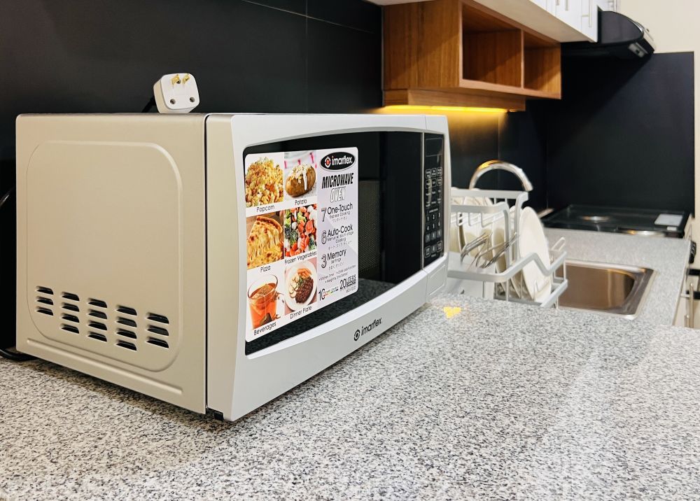 The condo is thoughtfully furnished with modern amenities to enhance your stay. Enjoy the comfort of air conditioning and stay connected with complimentary Wi-Fi. The living area is equipped with a Smart TV for your entertainment, while the kitchenette provides everything you need to prepare meals, including a microwave, stove, refrigerator, and kitchenware.