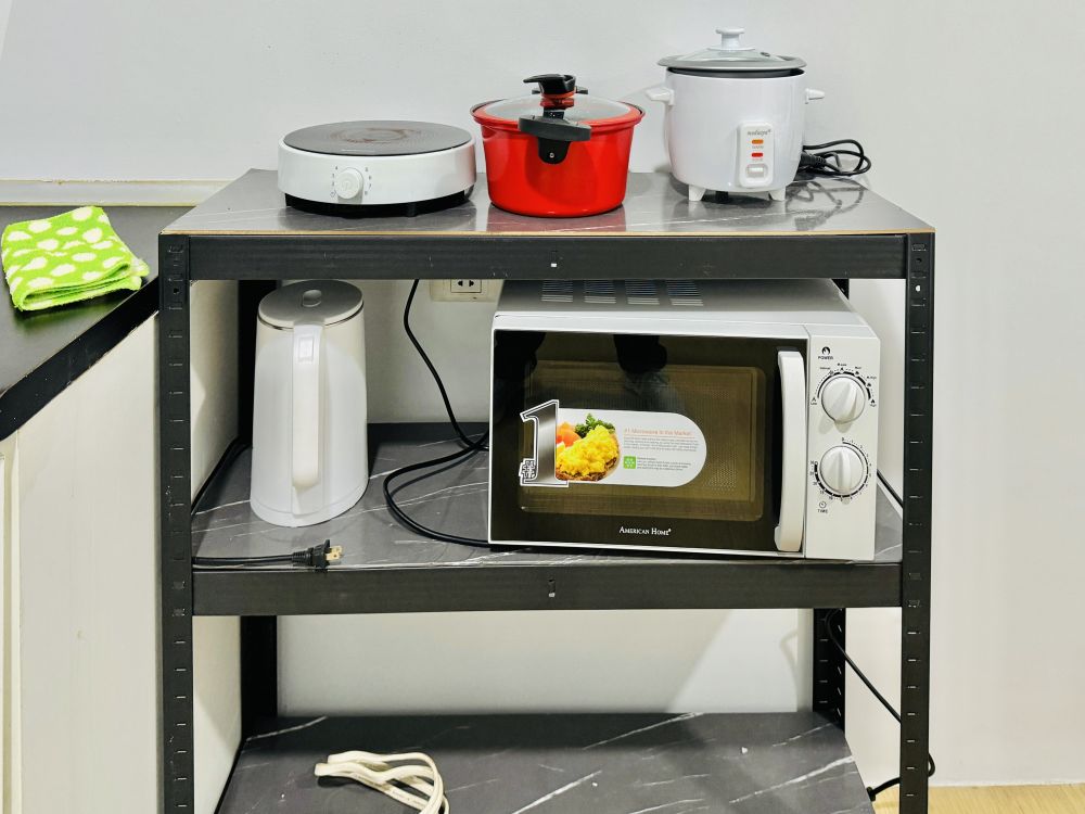 Step into a space equipped with all the essentials and more, ensuring a delightful experience for both short and long-term stays. The studio boasts a kitchenette complete with a microwave, refrigerator, stove, electric kettle, and kitchenware, allowing you to prepare meals with ease. Enjoy your culinary creations at the dining table or unwind in the living room, which offers a laptop-friendly workspace and a Smart TV for your entertainment.