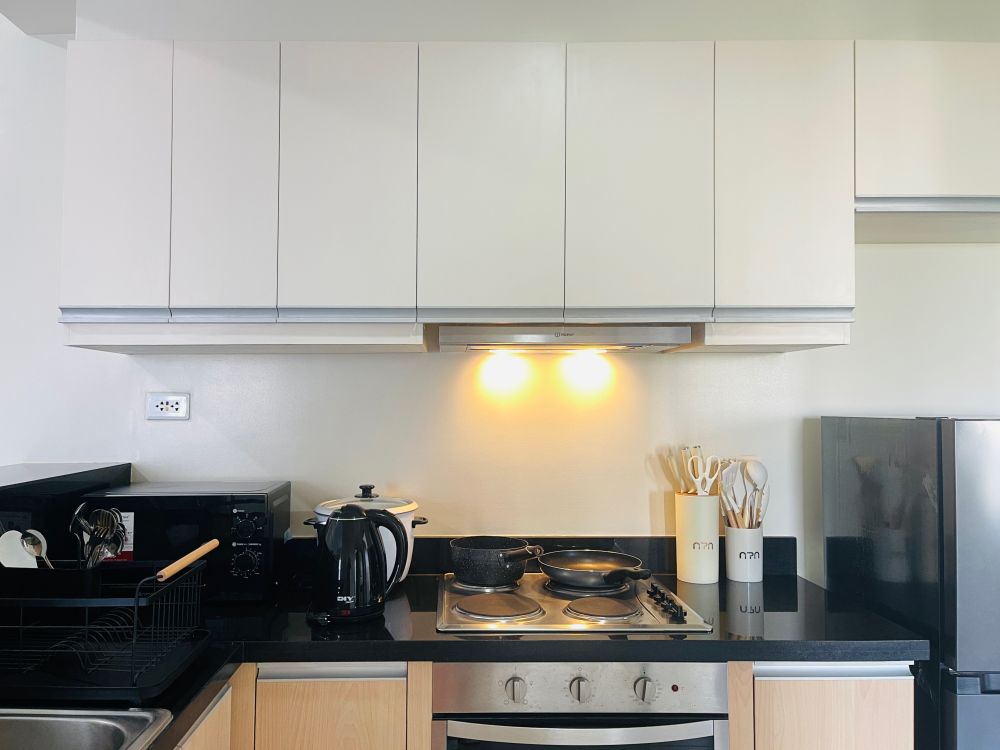Welcome to your unit in Iloilo City, where you’ll find everything you need for a comfortable stay. The unit offers a cozy space with a smart TV, perfect for relaxing after a long day. There’s a nice dining area where you can enjoy your meals, and here, you'll find the essentials you need to cook, making it easy and enjoyable to prepare your favorite dishes whenever you like.