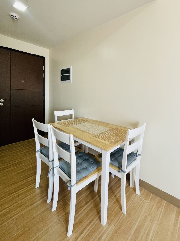 Welcome to your unit in Iloilo City, where you’ll find everything you need for a comfortable stay. The unit offers a cozy space with a smart TV, perfect for relaxing after a long day. There’s a nice dining area where you can enjoy your meals, and here, you'll find the essentials you need to cook, making it easy and enjoyable to prepare your favorite dishes whenever you like.