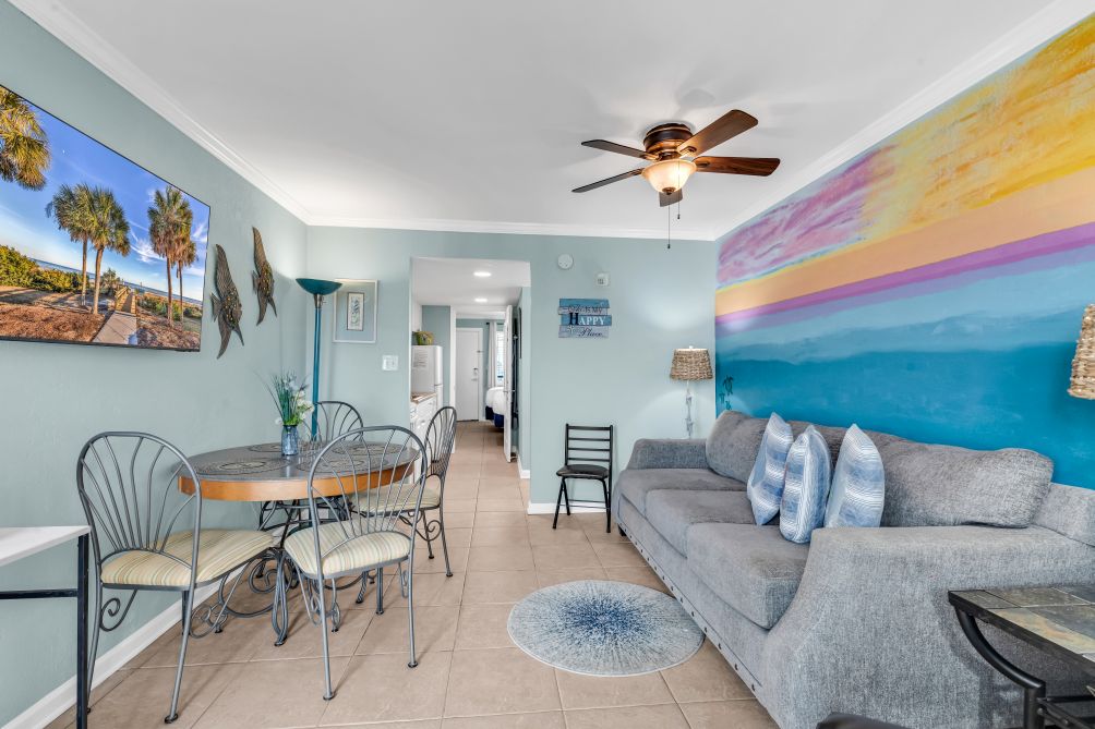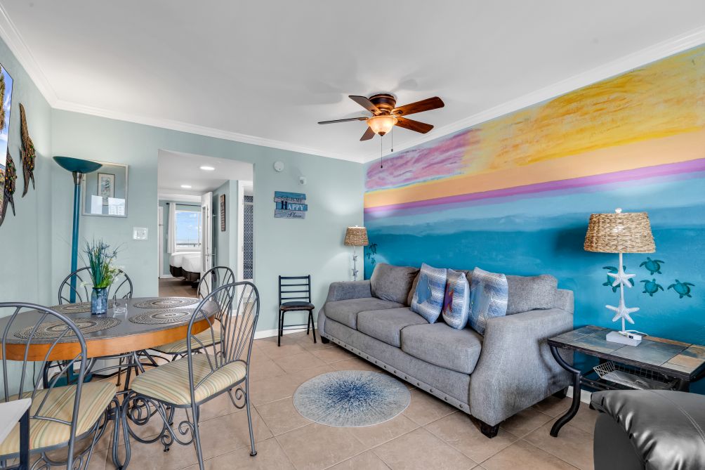 This delightful 1-bedroom condo in Myrtle Beach is the perfect beachside getaway, offering all the comforts of home. The spacious living area is great for relaxation, while the inviting dining space and fully-equipped kitchen make it easy to prepare and enjoy homemade meals.