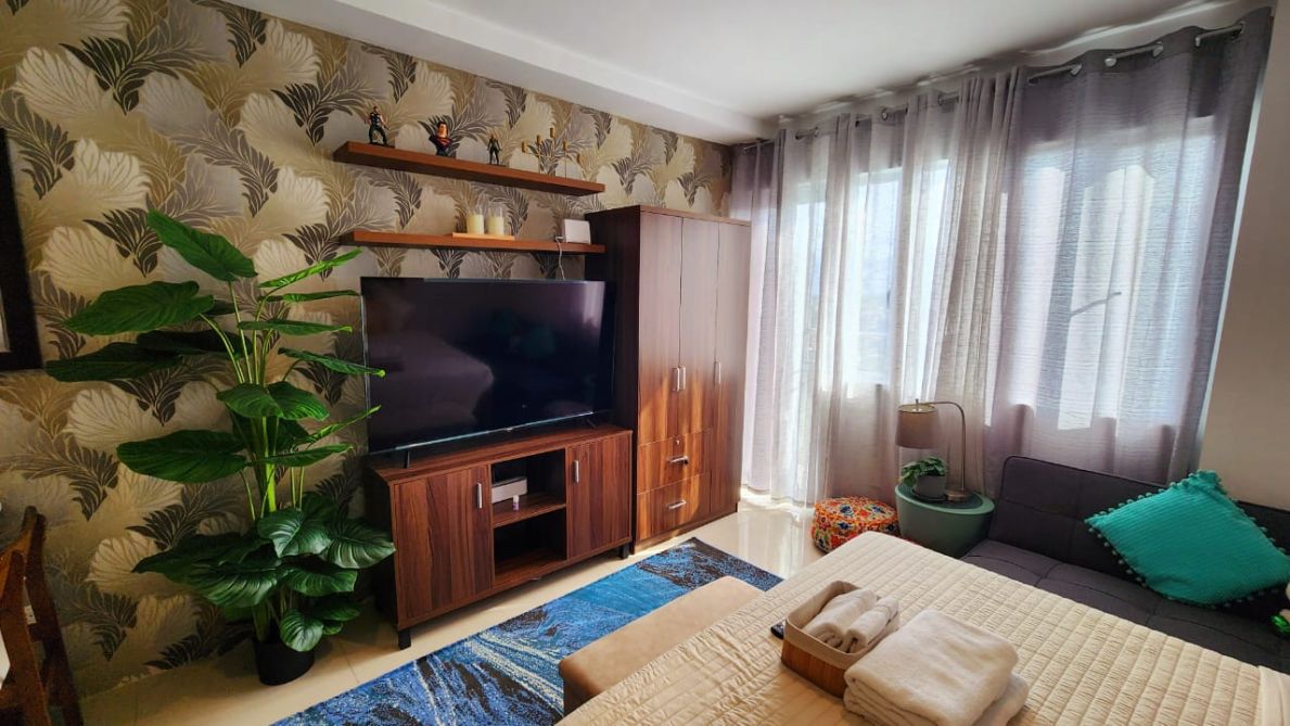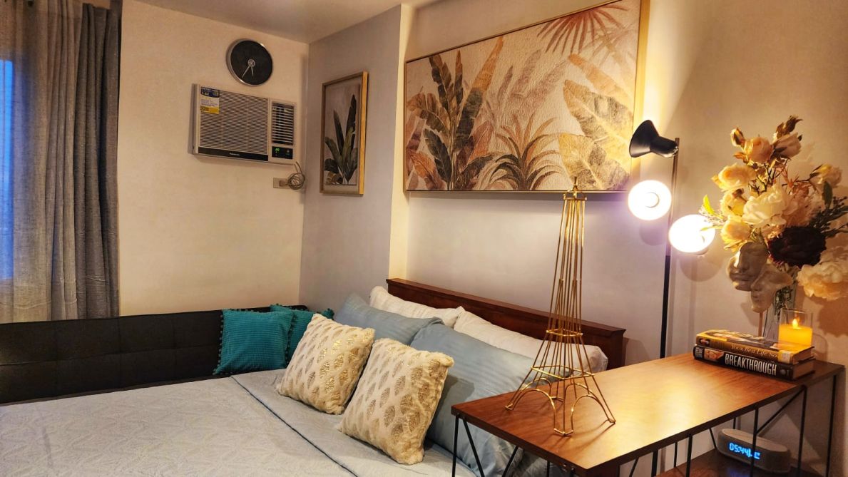 This modern and stylish studio at Sitari Condo Residences offers a comfortable stay in the heart of Bacolod City. Located along Lacson Street, it provides easy access to restaurants, cafés, shopping centers, and major landmarks. The unit is fully furnished with a cozy sleeping area, a kitchenette for light cooking, a smart TV, and Wi-Fi for entertainment and connectivity. With air conditioning ensuring a cool atmosphere and a well-maintained bathroom for convenience, it offers both comfort and functionality. Guests may also enjoy access to building amenities such as a swimming pool and gym, making it a perfect choice for a relaxing and convenient stay.