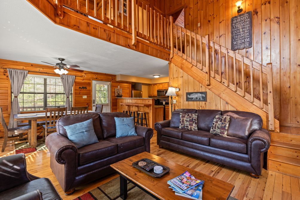 Tucked away in the rolling hills of Sevierville, this 3-bedroom cabin is a true retreat for those looking to unwind and reconnect with nature. With its warm wood interiors, high ceilings, and inviting atmosphere, it offers the perfect balance between rustic charm and modern comfort. Whether you're planning a peaceful getaway with family or a trip with friends, this cabin provides the space and ambiance to make lasting memories.
