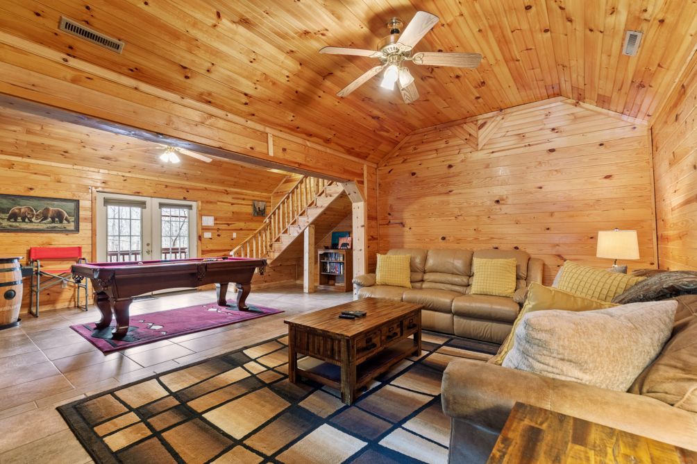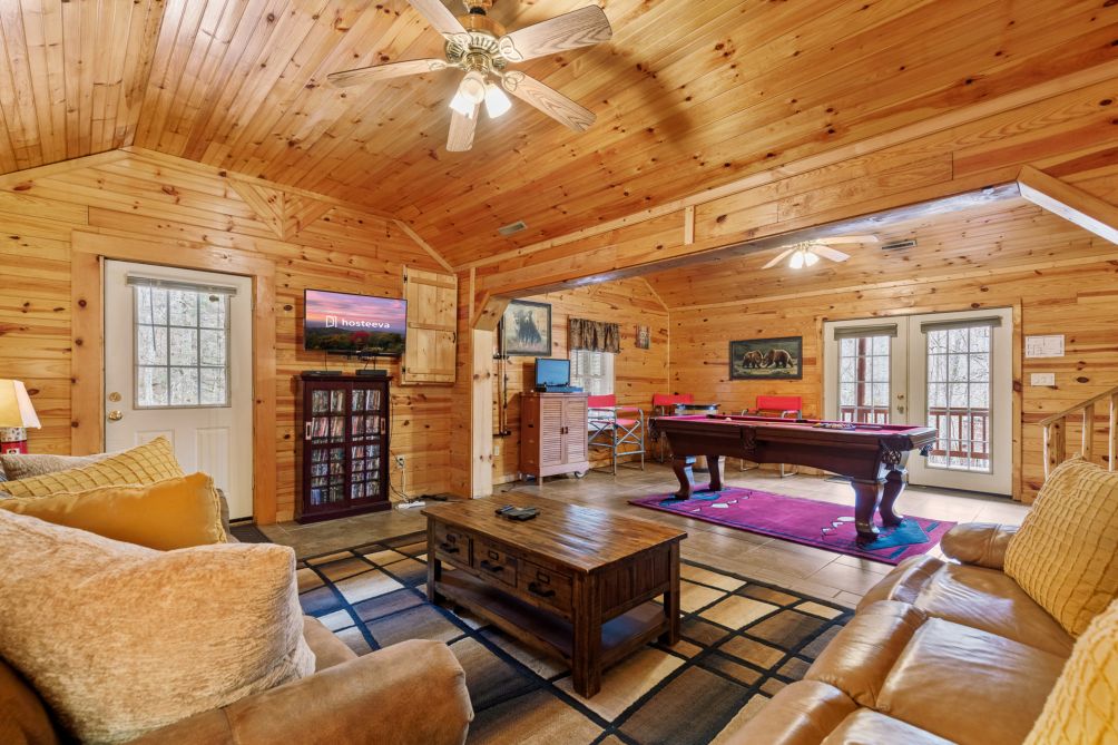 Inside, you'll find spacious accommodations with a mix of king, queen, and bunk beds, ensuring a comfortable stay for everyone. The home’s standout feature is its lively game room, where fun and friendly competition await. After a day of exploration, unwind in the private hot tub on the deck, surrounded by breathtaking mountain and forest views.