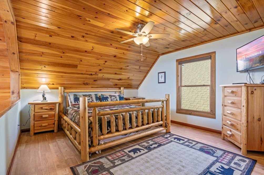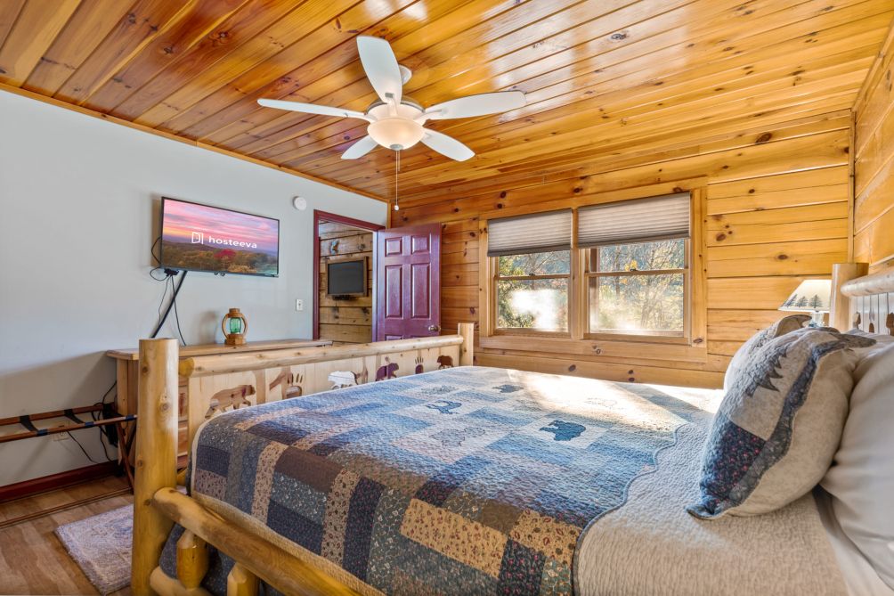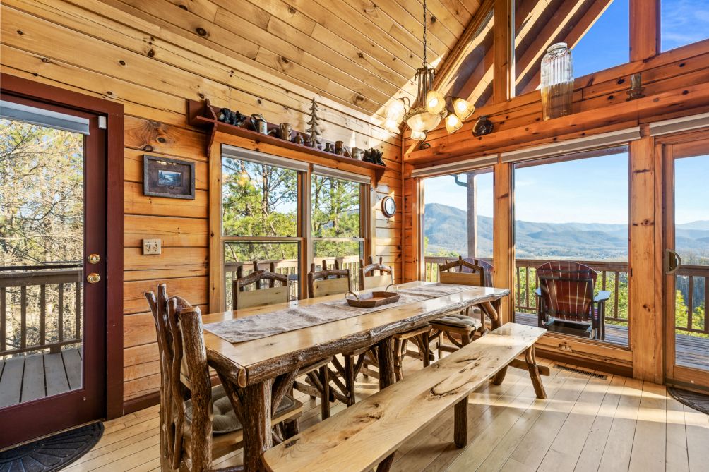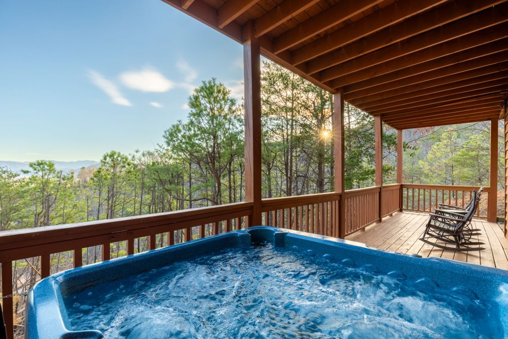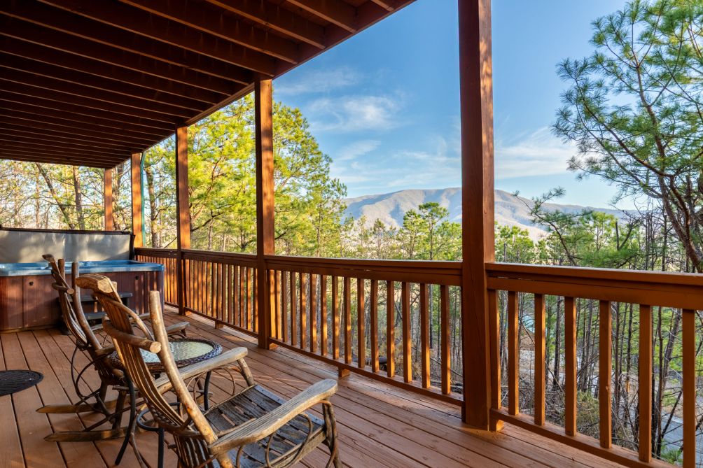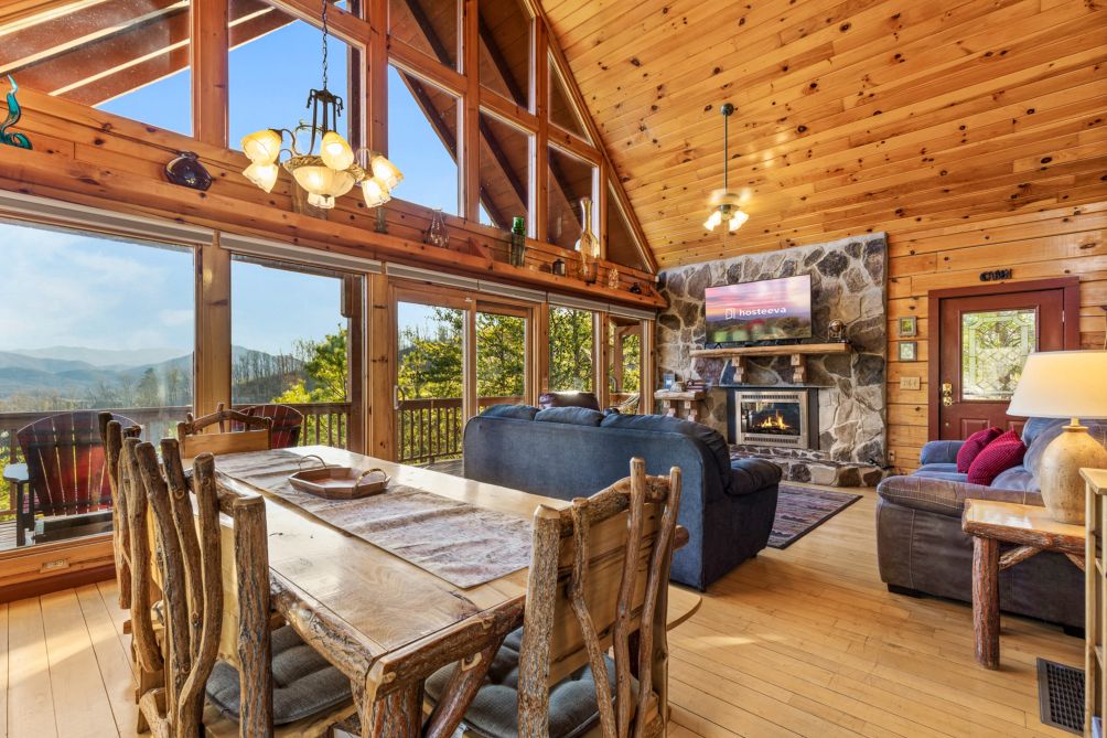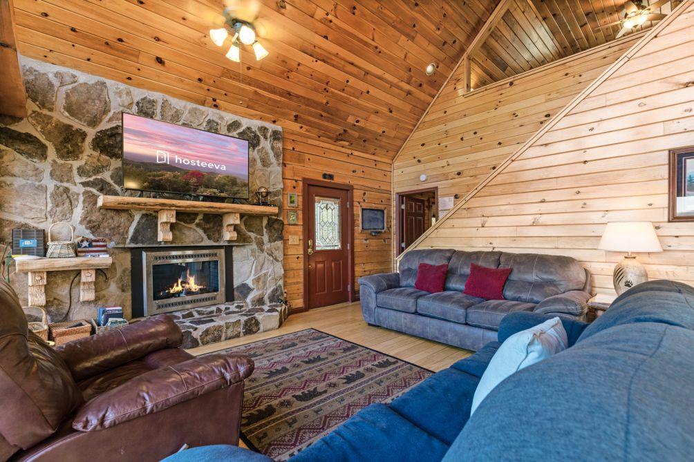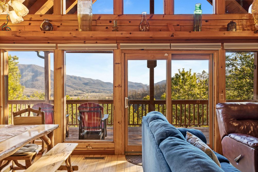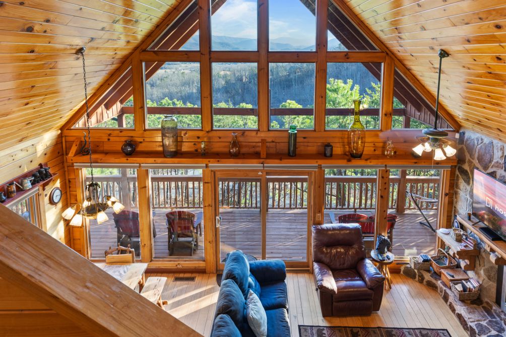 Introducing Smoky Overlook, a stunning cabin retreat in Sevierville, TN, offering breathtaking long-range views of Wears Valley. Nestled at the pinnacle of a quaint neighborhood, this cabin provides a serene, wooded ambiance on three sides, ensuring both privacy and a connection with nature. The spacious great room, adorned with cathedral ceilings, bathes in natural light and connects seamlessly to a wrap-around deck, perfect for soaking in the panoramic vistas.