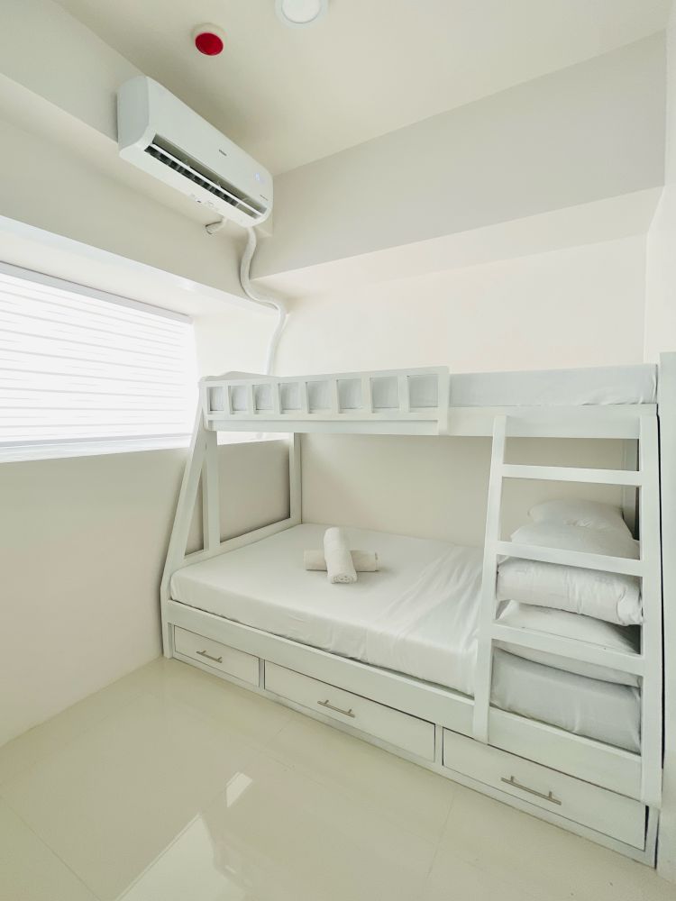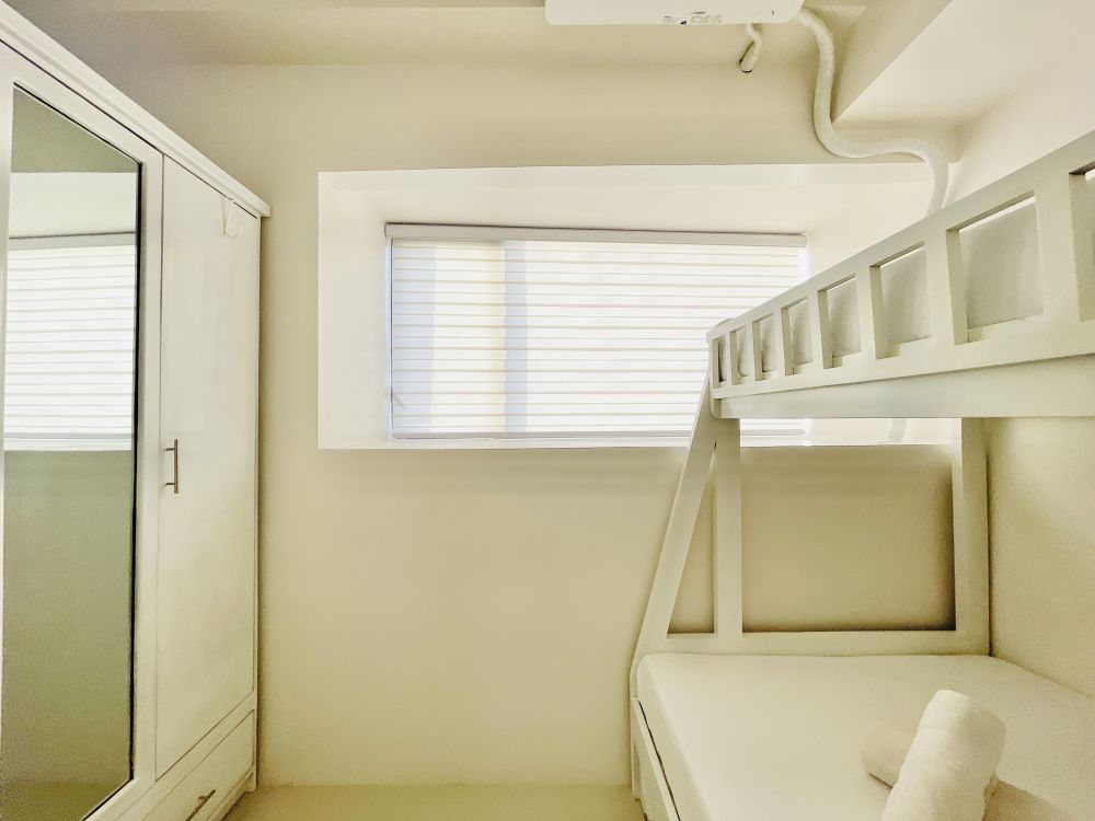 Inside, you’ll find a cozy seating area complete with a TV, perfect for unwinding after a long day of exploring Iloilo. The room also includes a convenient kitchenette, allowing you to prepare light meals or snacks during your stay. Guests are welcome to enjoy the shared outdoor pool, ideal for a refreshing dip, as well as the on-site playground for added fun.