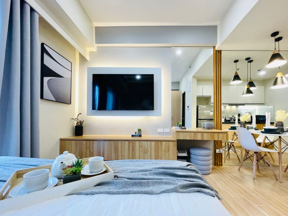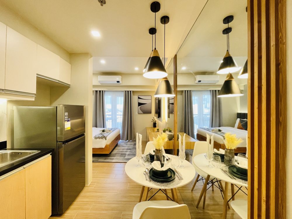 Welcome to your unit in Iloilo City, where you’ll find everything you need for a comfortable stay. The unit offers a cozy space with a smart TV, perfect for relaxing after a long day. There’s a nice dining area where you can enjoy your meals, and here, you'll find the essentials you need to cook, making it easy and enjoyable to prepare your favorite dishes whenever you like.