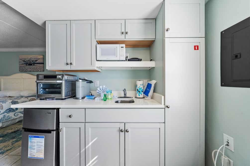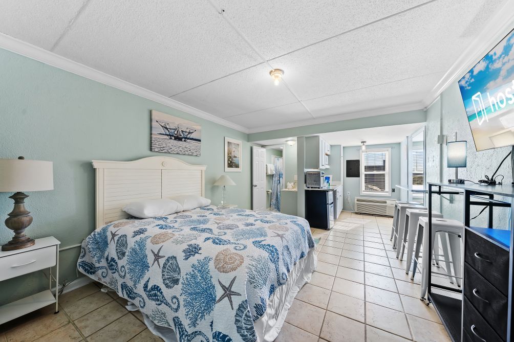 Nestled just steps from the beach, Beachview 312 is a charming 3rd-floor studio designed for a relaxing seaside escape. The space blends trendy style with cozy comfort, featuring nautical-inspired décor that sets the perfect vacation mood.