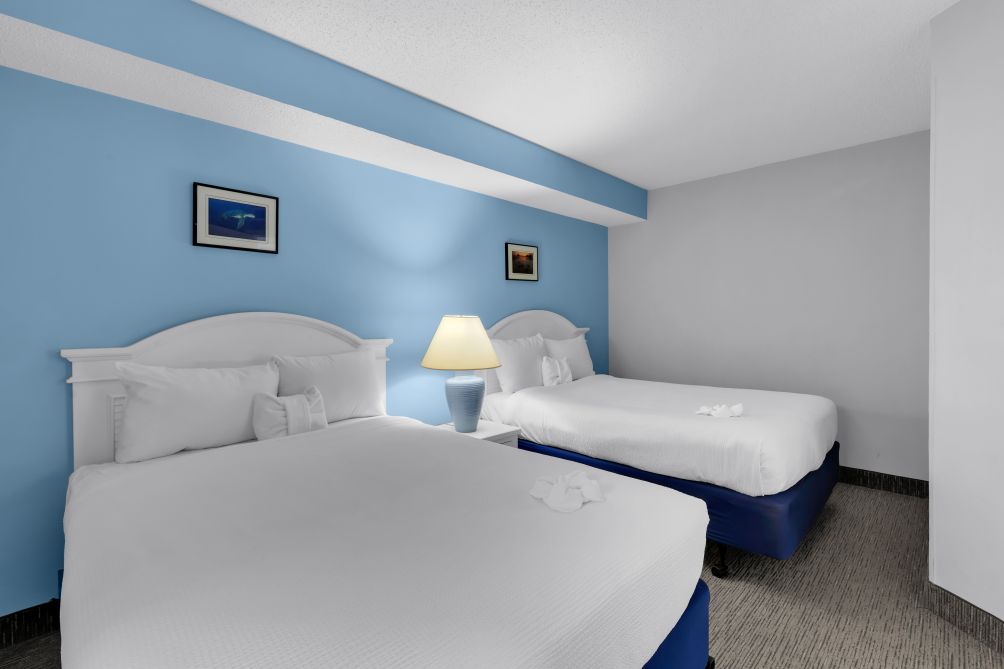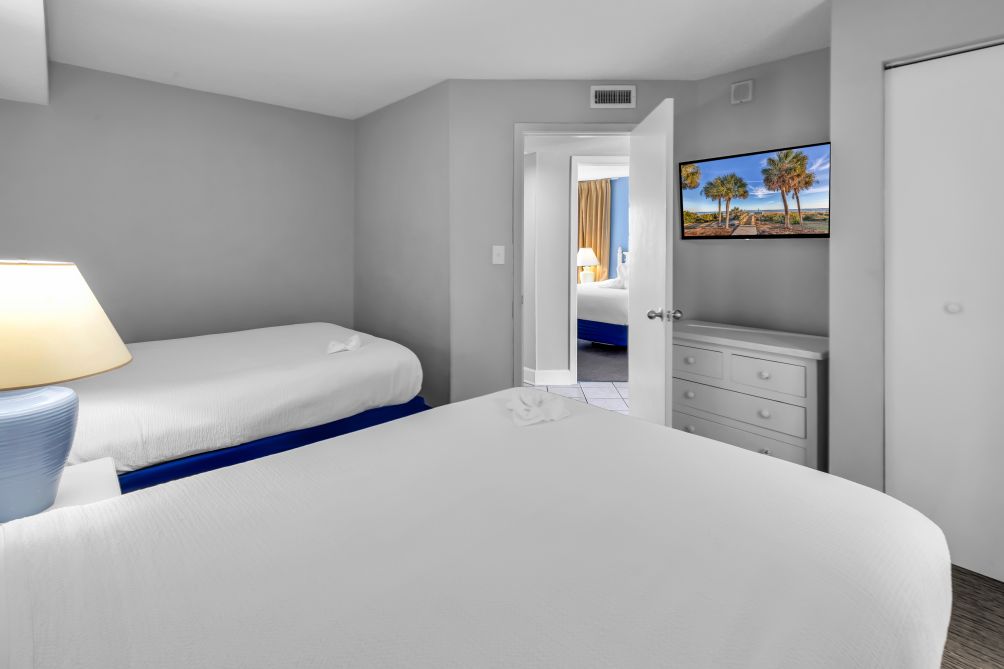 Inside, the condo features a thoughtfully designed layout with a combination of full and queen beds, ensuring a comfortable stay for all guests. The upgraded high-speed internet makes it easy to work remotely while enjoying the beachside ambiance. For relaxation, indulge in the shared amenities, including a heated outdoor pool, indoor pool, and a lazy river.