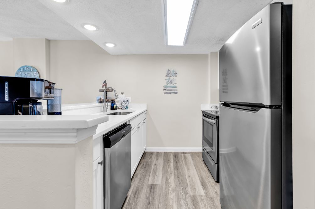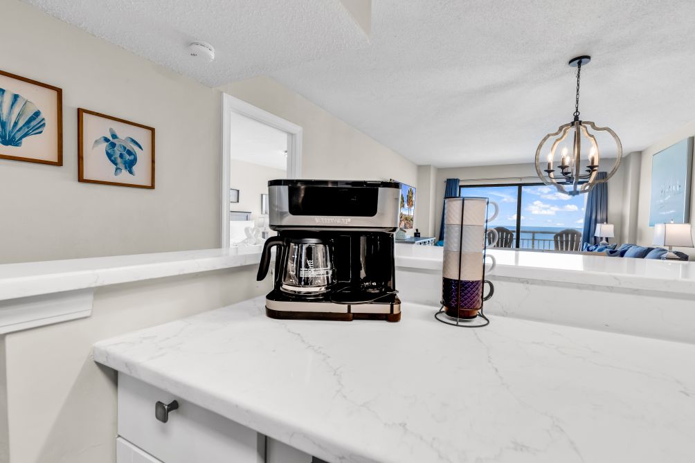 Step inside and feel right at home with an equipped kitchen—ideal for whipping up a meal to enjoy on the balcony as you take in the panoramic seaside scenery. The cozy living area offers the perfect place to unwind after a sun-filled day.