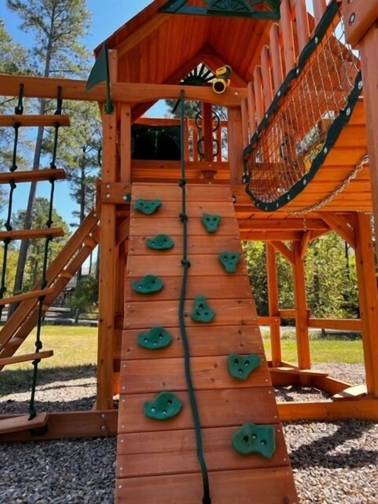 Big Timber Lodge is also equipped with five, 8ft white tables and 32 chairs, to host any meeting. The common area also has a fireplace, commercial gas stove, commercial fridge, washer/dryer, chest freezer, and restroom. After spending the morning catching up with your family or group over breakfast, retreat to your own private space in your bedroom for relaxing, or simply step out the backdoor and let the fun begin. In the center of the courtyard is a 20×40 swimming pool, hot tub, playground for the kids, and a fire pit. This area is also complete with speakers for YOUR music. We offer corporate and wedding packages so you can do as much, or as little in the way of entertaining and decorating that you want.