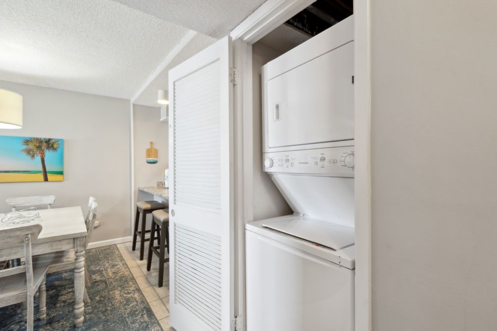 Enjoy a comfortable and relaxing stay in this beachfront condo located in Buena Vista. The unit includes a bright living room with a TV, a dining area, and a fully equipped kitchen with everything you need to prepare meals during your stay. A washer and dryer are also provided for your convenience.