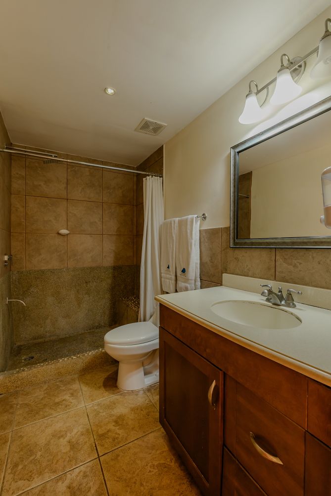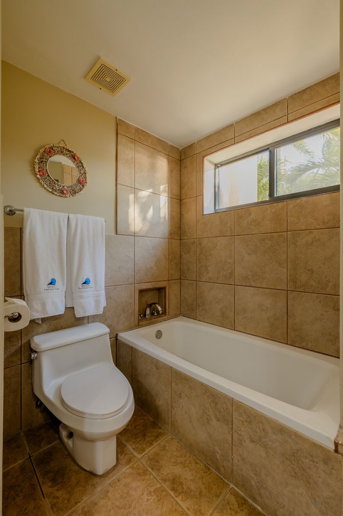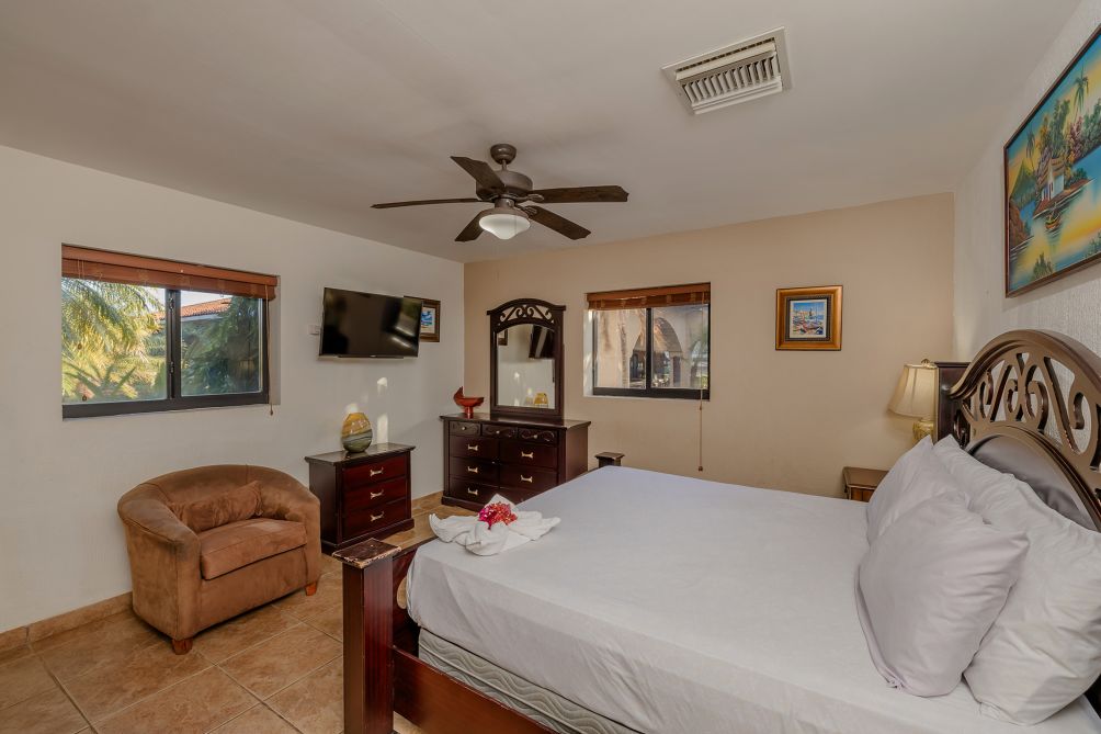 This impressive apartment is one of our largest, conveniently located adjacent to the restaurant and pools. The master bedroom features a king-size bed and ensuite bathroom. The second bedroom offers a queen-size bed with a bathroom that also serves as a guest bathroom, and the living room includes 2 sofa beds. Located on the first floor, it is conveniently situated closer to the restaurant and pool area. The Granada Royalty Suite boasts a fully equipped kitchen, laundry facilities with a dryer, and a spacious L-shaped terrace furnished with chairs offering an incredible view of the Pacific Ocean. Ideal for accommodating up to 6 people (4 adults and 2 children) or 3 couples.