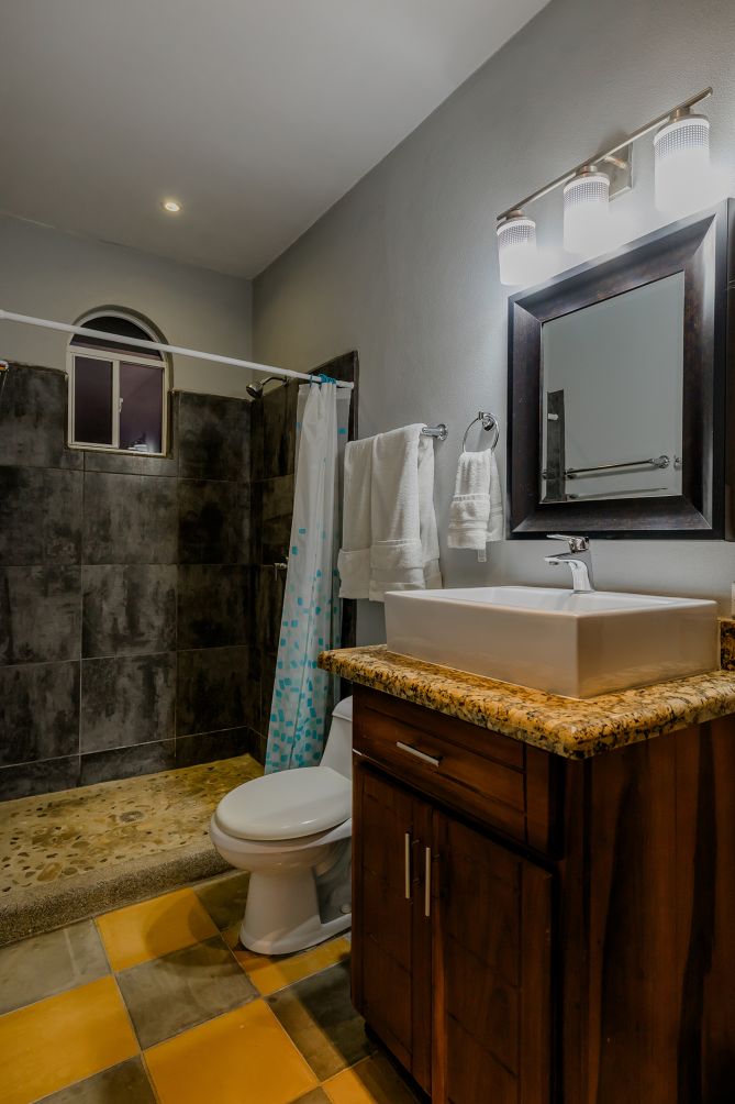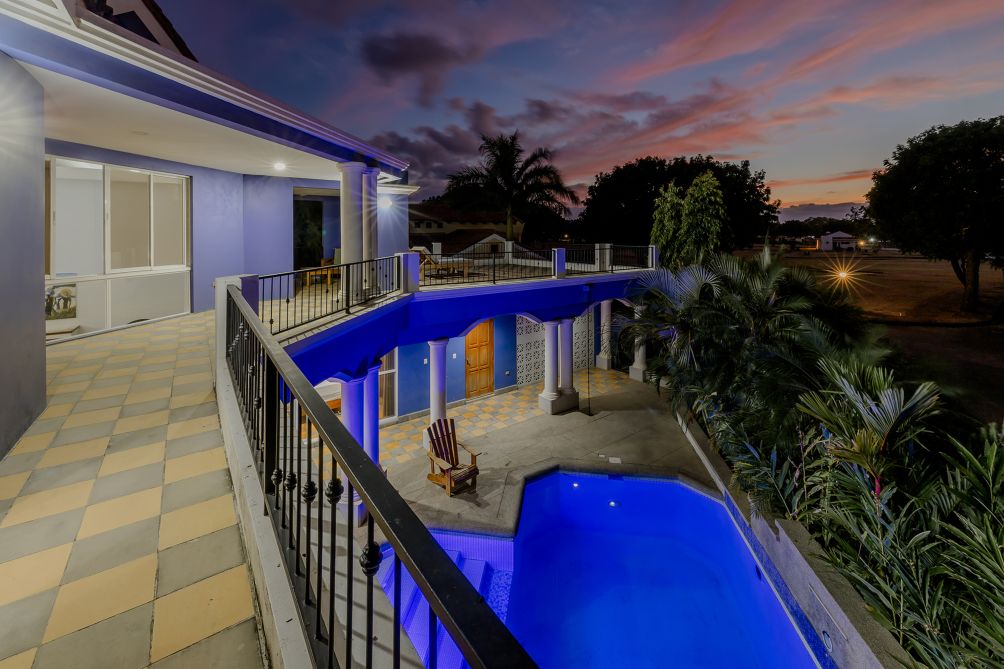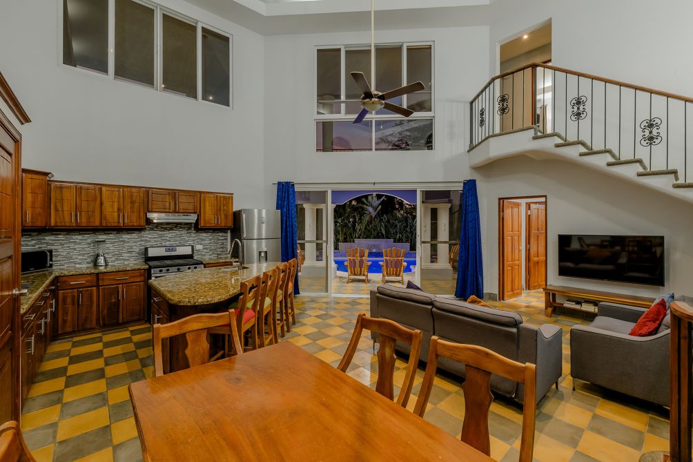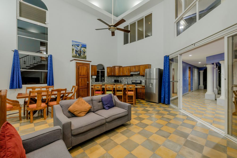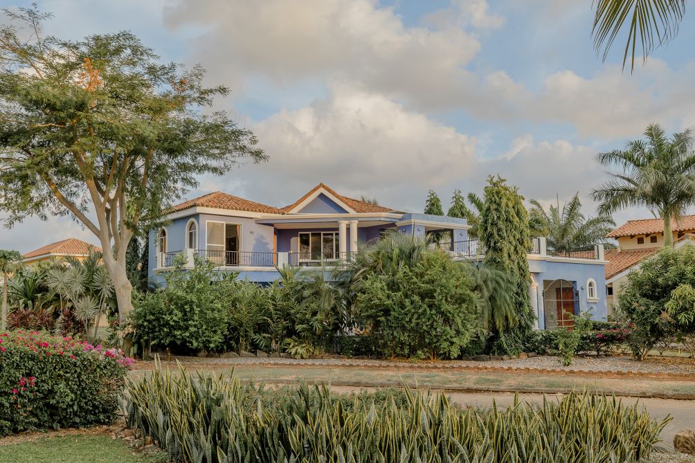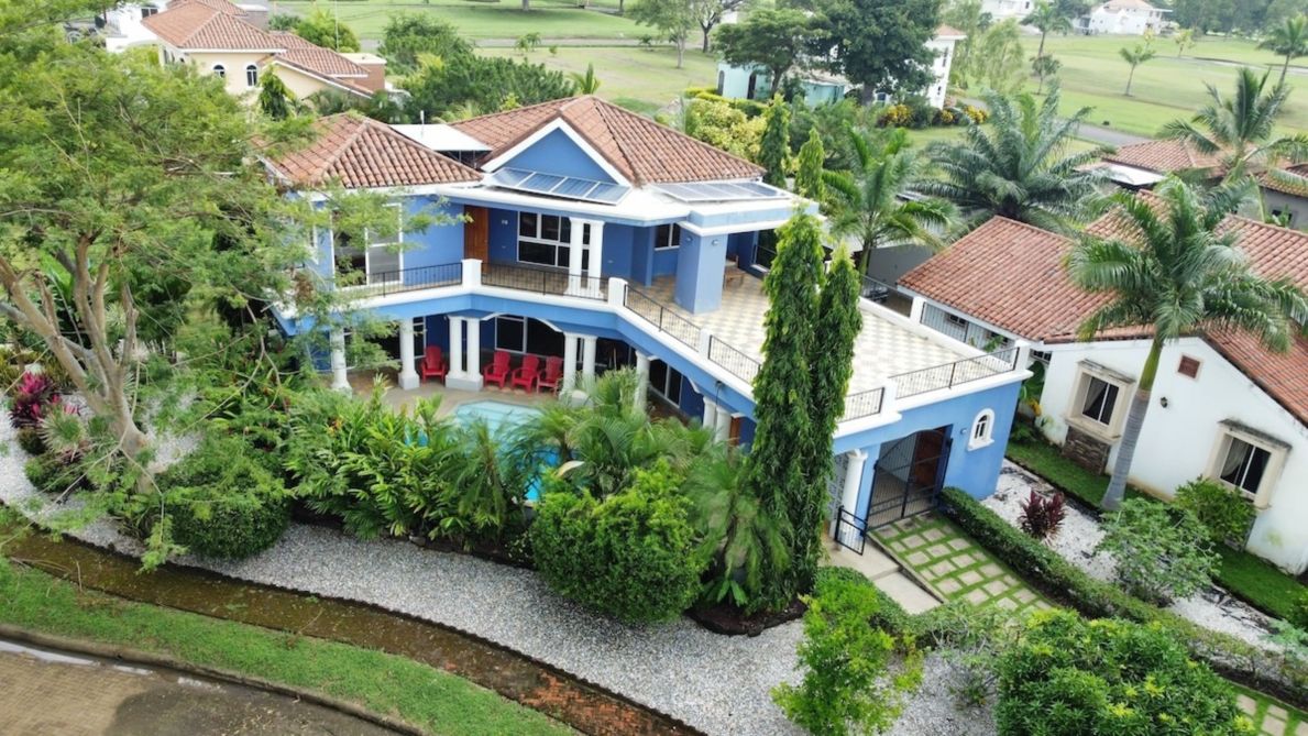 This stunning two-story residence features three air-conditioned bedrooms, offering a perfect combination of comfort and tranquility. The property includes two private bathrooms, one shared bathroom, a private pool, a laundry area, and a fully equipped kitchen. Enjoy high-speed wireless internet and a Smart TV in the living room. The house is powered by a hybrid electrical system, utilizing both solar and conventional energy sources. For added convenience, there is covered parking and a terrace with a picturesque view of the golf course. It is located just a 15-minute walk from the pool area, beach, and restaurant. The residence accommodates up to six people, including adults and children.