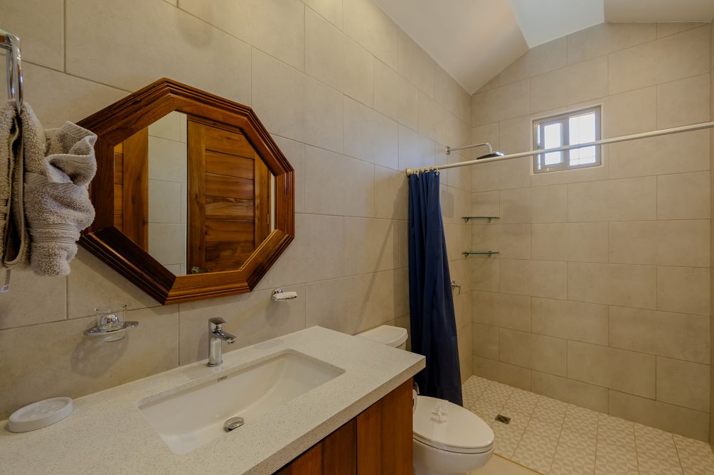 Located just a 12-minute walk from the restaurant, pool, and beach, this residence features two bedrooms. Each bedroom is furnished with a queen-size bed, a Smart TV, a private bathroom, and individual air conditioning for added comfort. The second bedroom bathroom also serves as a guest bathroom.
