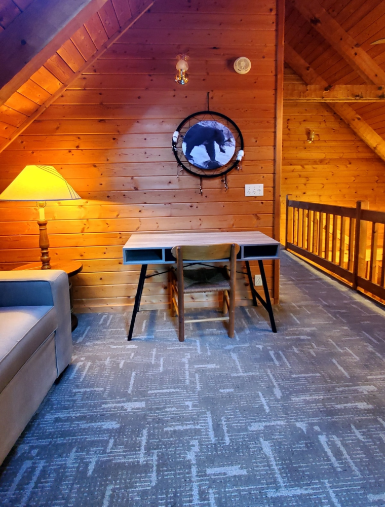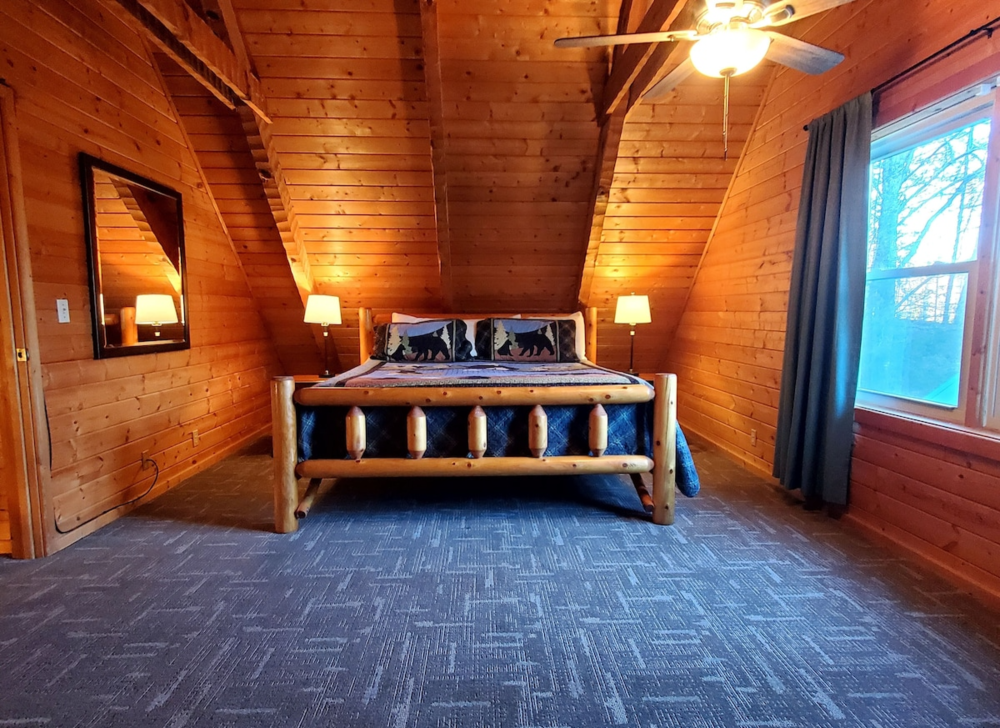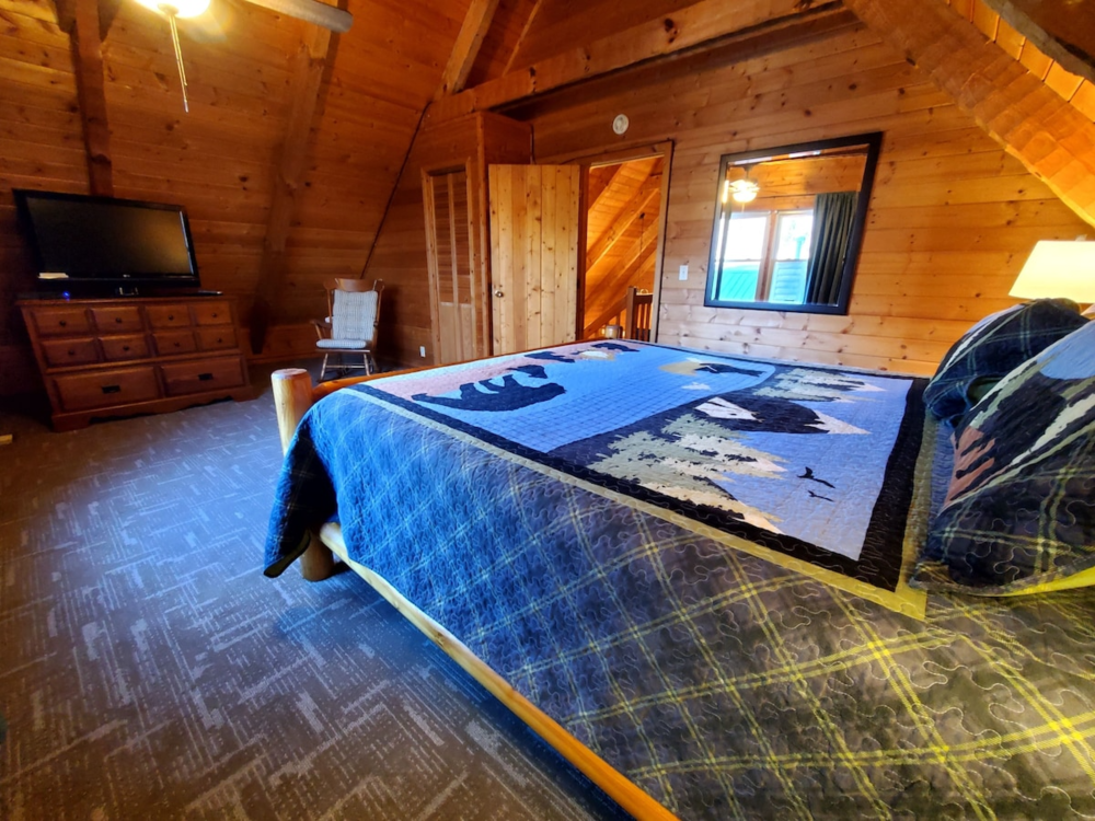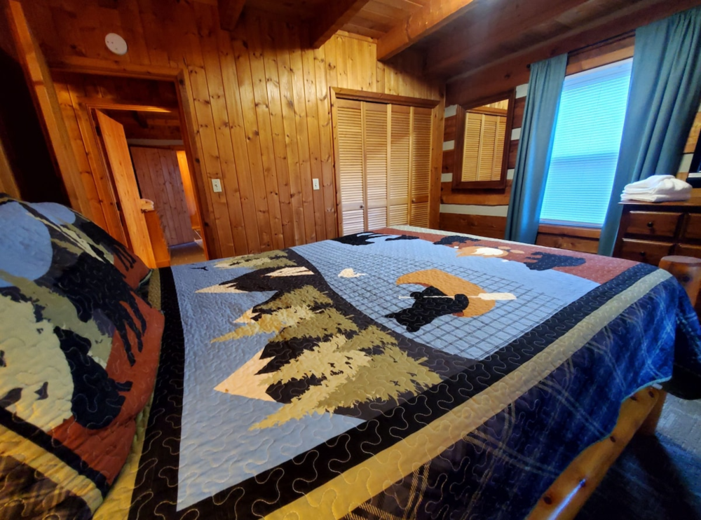 Inside, the home boasts a cozy ambiance with a spacious living area featuring a fireplace and hardwood floors. The well-appointed kitchen is perfect for preparing meals, while the dining area invites gatherings with loved ones. Sleeping arrangements include a luxurious king bed and two queen beds, plus a sofa bed.