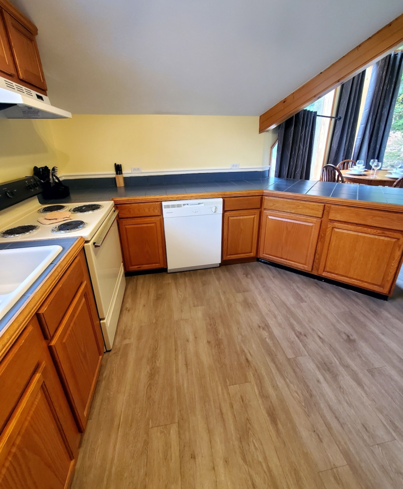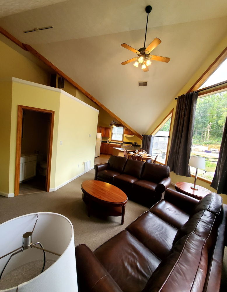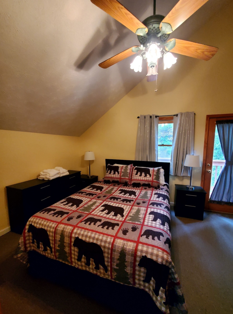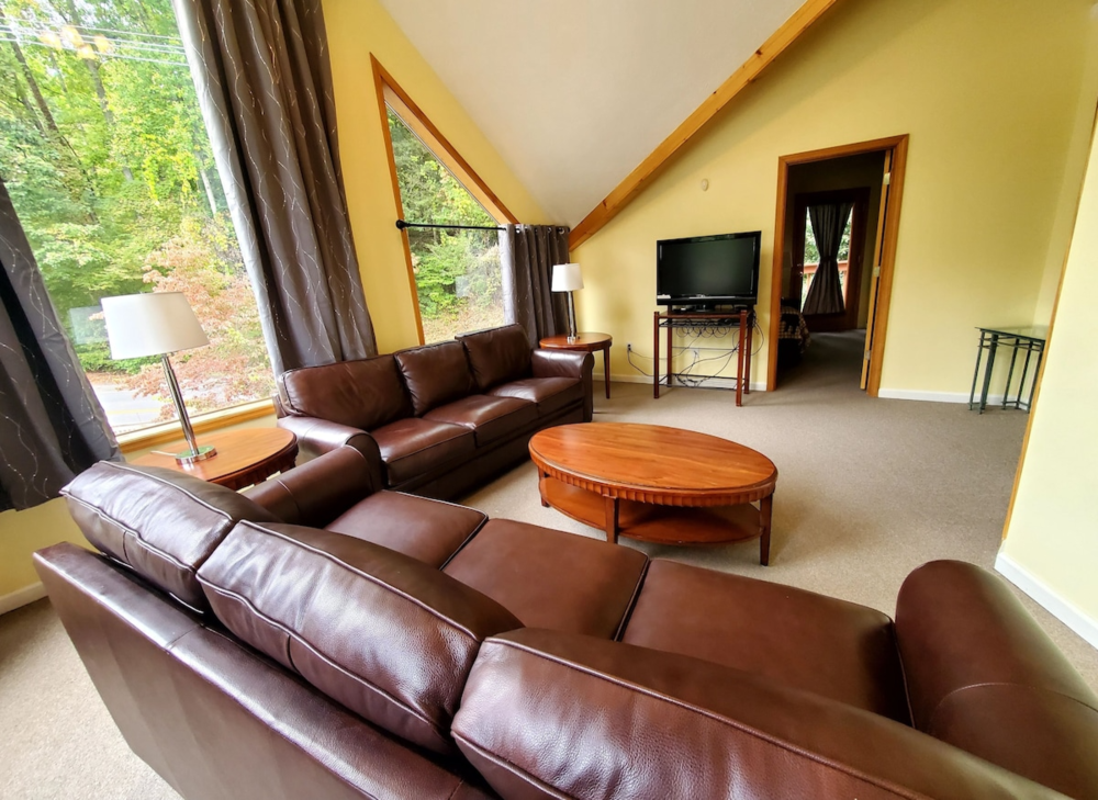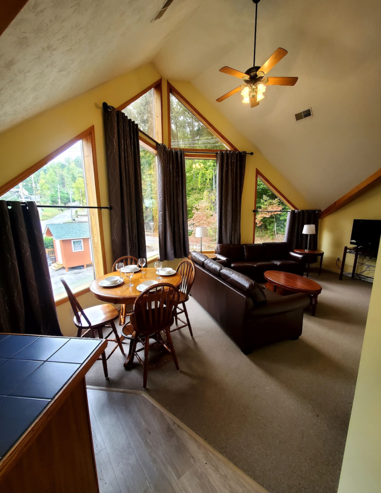 Inside, you’ll find a cozy living room featuring a smart TV, ideal for relaxing after a day of exploring. The dining area and equipped kitchen with a dishwasher make it easy to enjoy meals at home. Step out onto the private balcony to take in the fresh mountain air and sweeping views. Comfortable sleeping arrangements accommodate up to four guests with a full-size sleeper sofa, making it perfect for couples, small families, or friends seeking a memorable mountain getaway.