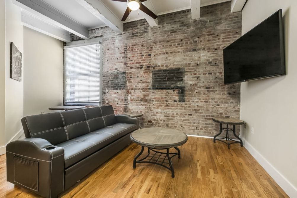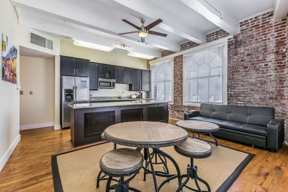 Merchant Lofts by Hosteeva spacious and newly renovated condo features a full modern kitchen, brand new appliances, flat-screen TVs and everything else you need for a perfect cozy urban vacation home. This charming condo by Hosteeva is furnished with custom interiors and hand-picked furniture to make your stay one of a kind. This New Orleans style condo with exposed brick accent walls, cozy details and custom furniture will make you live like a local for the duration of your stay.