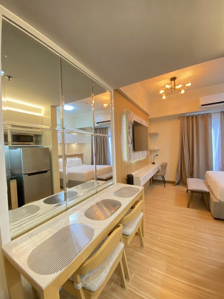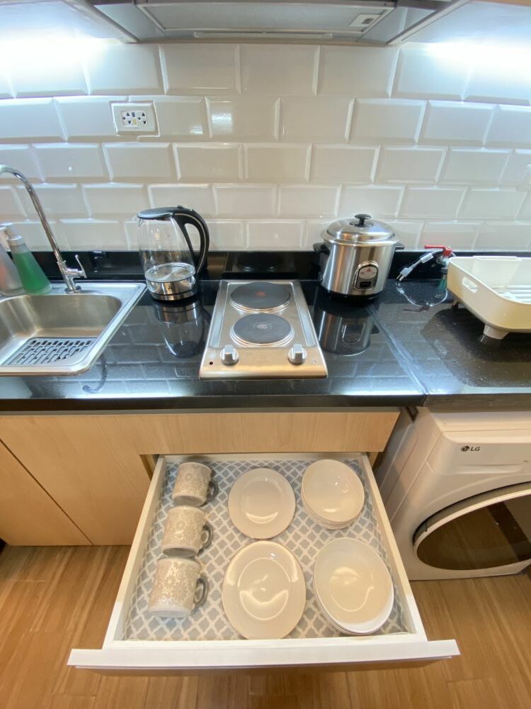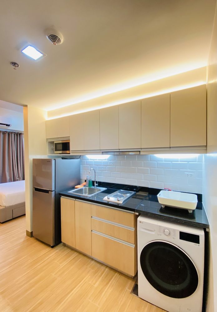 Welcome to your unit in Iloilo City, where you’ll find everything you need for a comfortable stay. The unit offers a cozy space with a smart TV, perfect for relaxing after a long day. There’s a nice dining area where you can enjoy your meals, and here, you'll find the essentials you need to cook, making it easy and enjoyable to prepare your favorite dishes whenever you like.