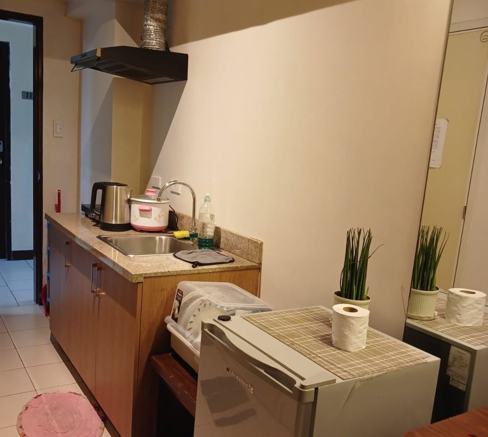 Stay in the center of Baguio City with this simple and practical unit. It has a sitting area with a Smart TV where you can relax, plus a small kitchenette with a stove, mini fridge, electric kettle, and kitchenware for preparing easy meals.