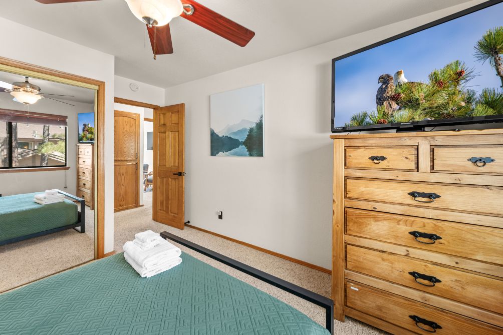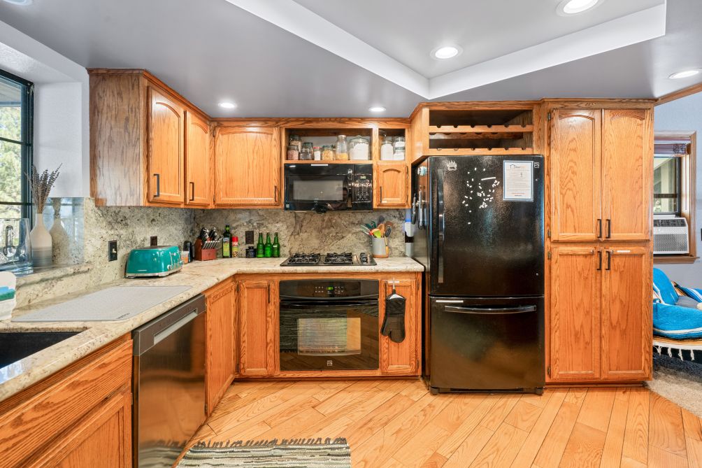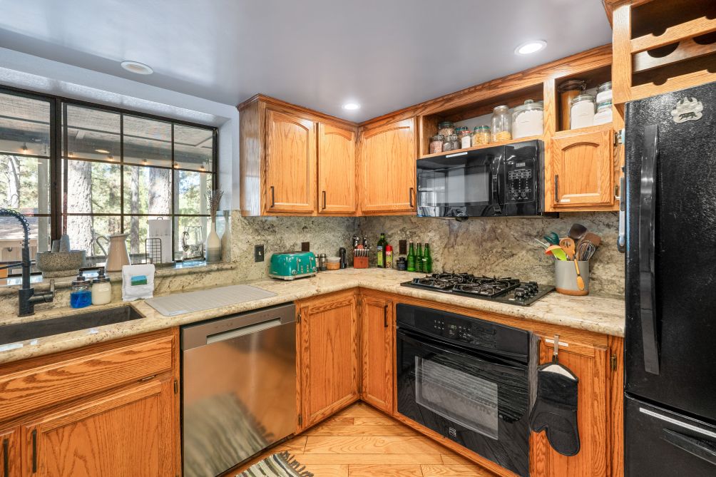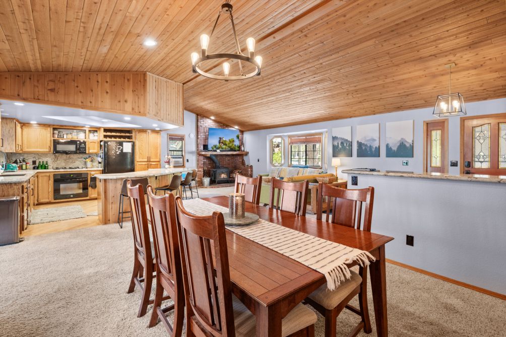 The kitchen is fully stocked with all the essentials, including appliances, cookware, dishware, flatware, and wine glasses. Brew a fresh cup of coffee in the morning and step onto the back deck to take in the crisp mountain air and soothing sounds of nature.
