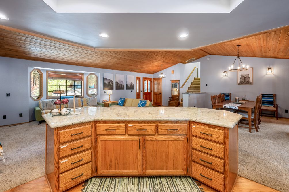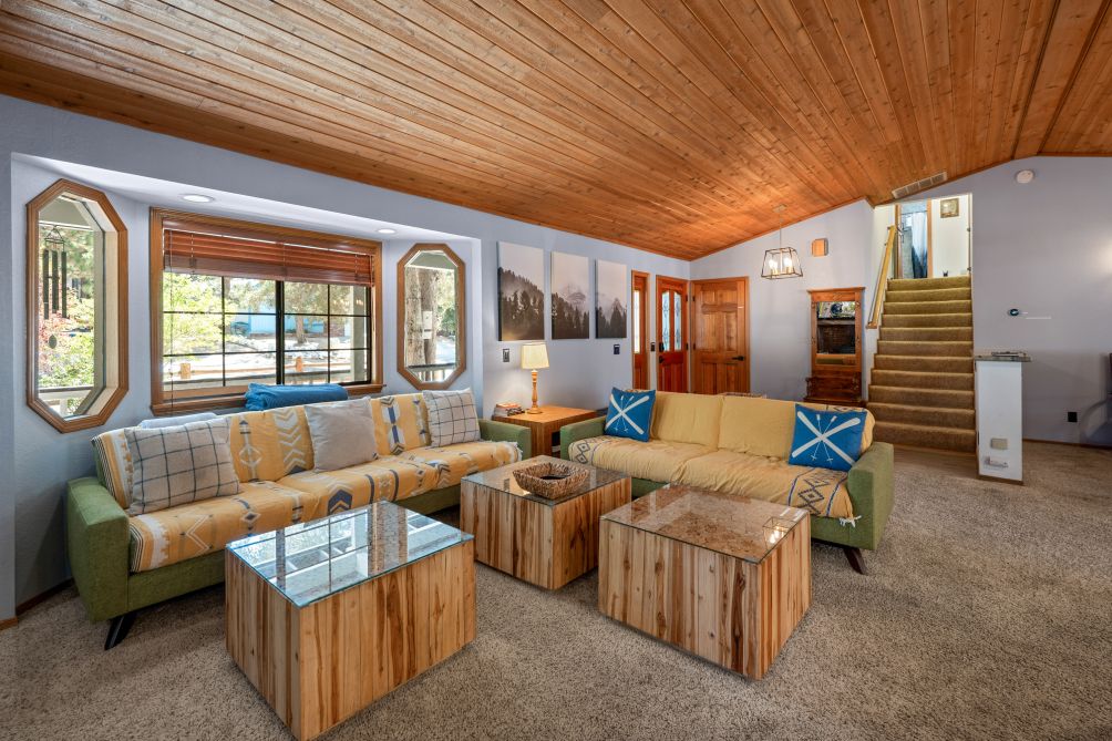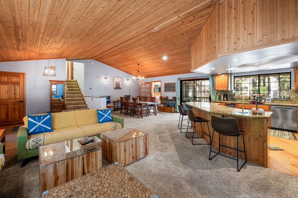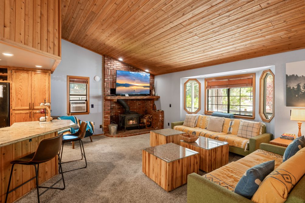 Welcome to this charming mountain retreat in Big Bear for a peaceful solo getaway, a romantic escape, or a fun-filled trip with family and friends. Step inside to an inviting open floor plan where the living area seamlessly connects to the fully equipped kitchen, allowing you to prepare meals while enjoying a movie or quality time with loved ones. The living room features a cozy fireplace, Smart TV, and board games, creating the perfect space to unwind after a day of adventure.