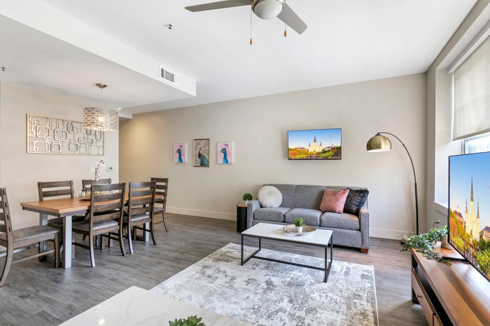 This stylish 1 bedroom condo with amazing city views is conveniently located near the French Quarter and is a short walking distance to Bourbon St., Tulane Medical Center and Caesars Superdome. Only a block away from Canal Street giving you access to all kinds of public transportation. The convention center is just 1.6 miles away from the condo. The nearest airport, Louis Armstrong New Orleans International Airport is only 11.2 miles from the condo.