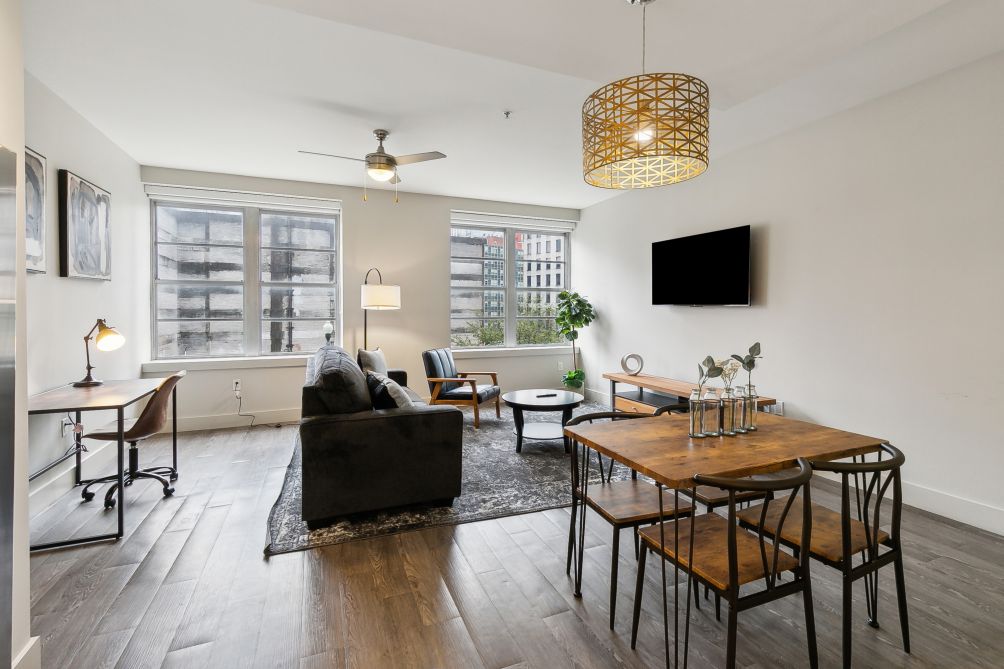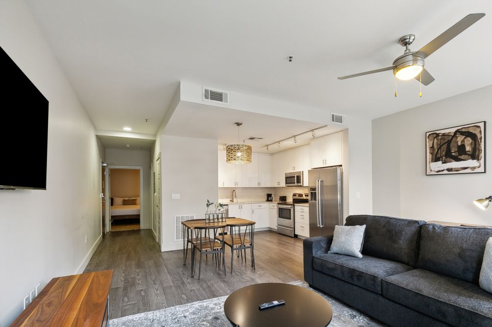 This modern and spacious 1 bedroom condo comes equipped with an amazing city view from the rooftop where you can enjoy your morning coffee or an afternoon cocktail, modern design with high ceilings, full kitchen and bathroom amenities, bedroom with walk-in closet, a full bathroom and a spacious living room with a soft pull out sofa.