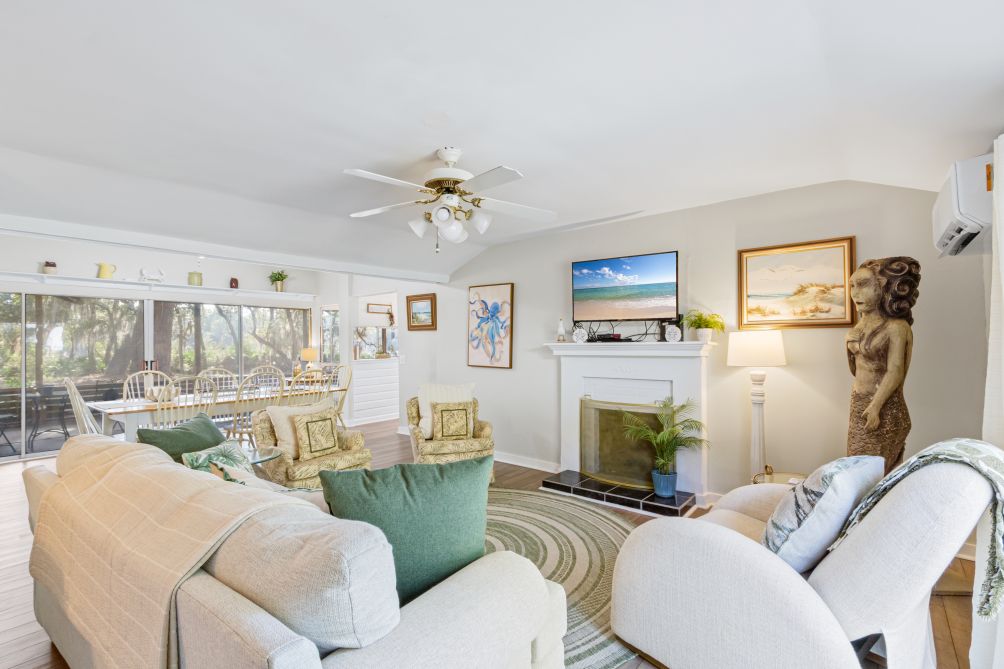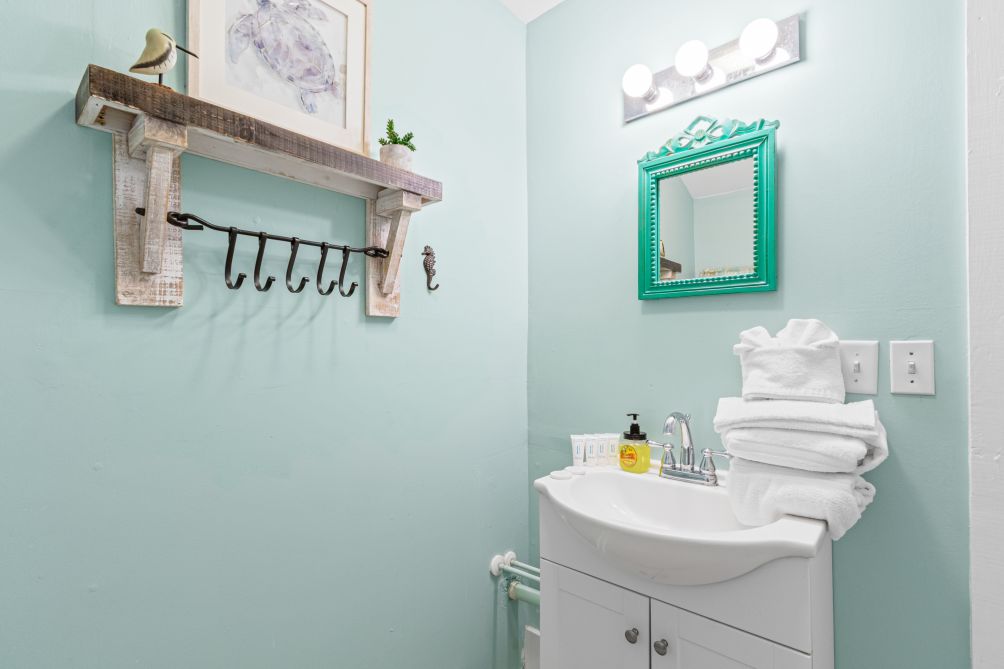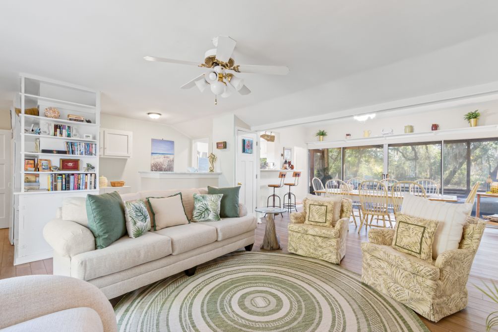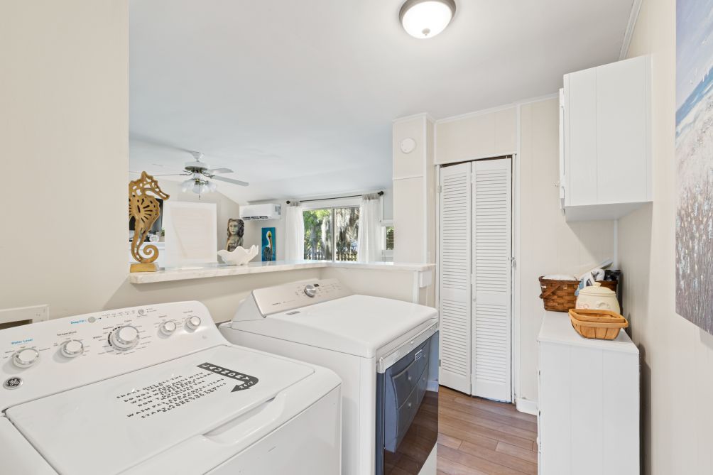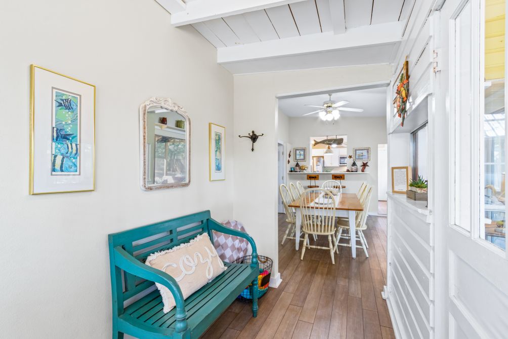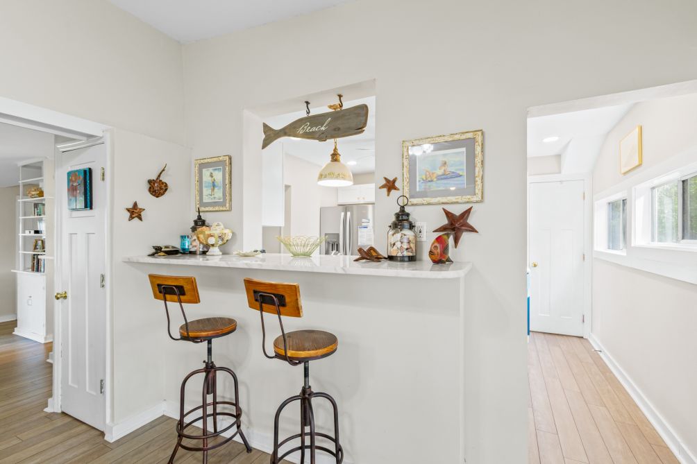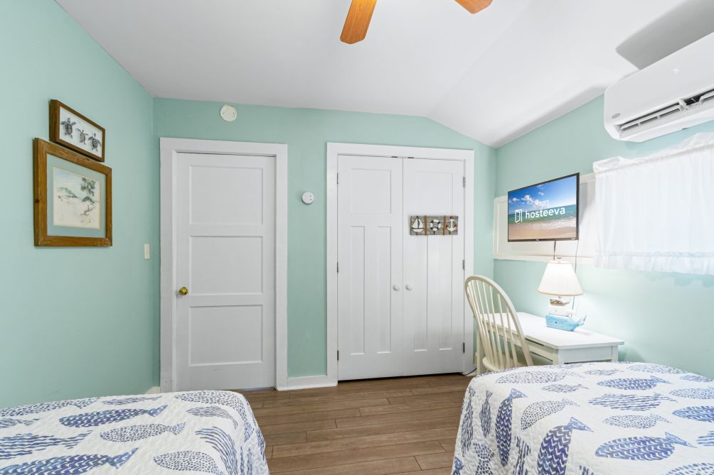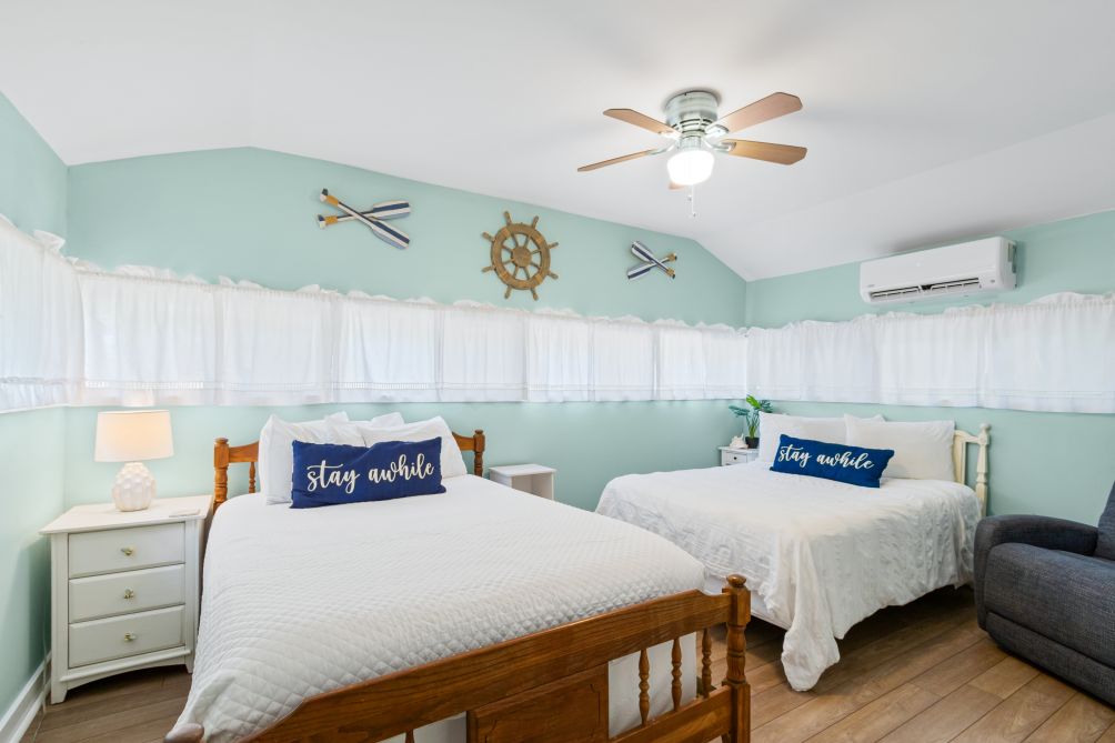 Inside, the cottage features three bedrooms and two baths, comfortably sleeping up to eight guests. Following recent renovations after Hurricane Sally, you’ll enjoy a modern kitchen, new flooring, updated bathrooms, fresh furnishings, and ceiling fans throughout. The ground-level layout makes it easily accessible for all ages.