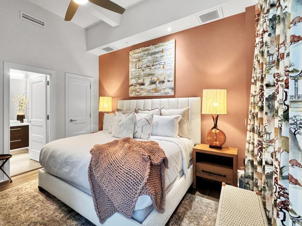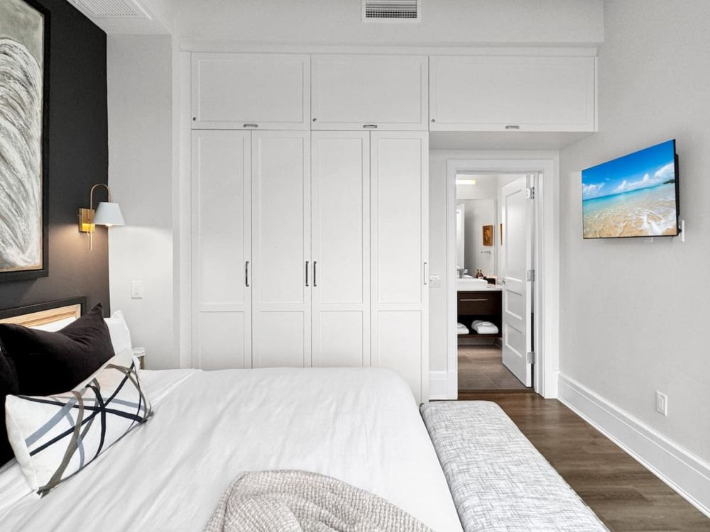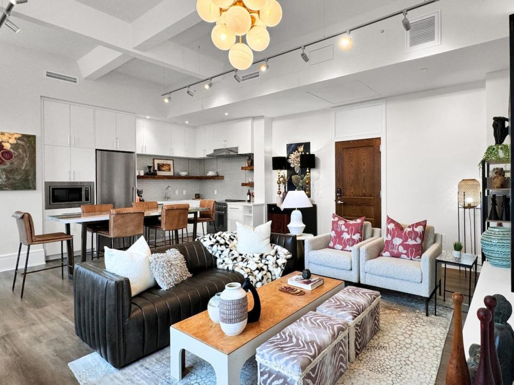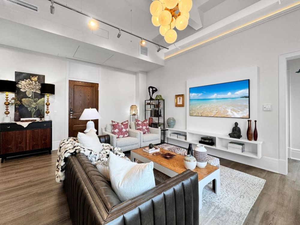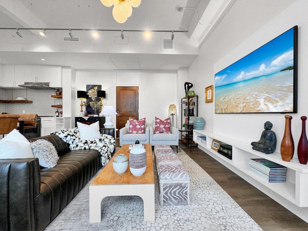Stay connected and productive with high-speed Wi-Fi, USB-C charging stations, Sony Smart TVs, and a dedicated remote workspace. Guests also enjoy exclusive access to the Sky Lounge courtyard, gym, and coworking space. Washer/dryer and curated local recommendations are all included.