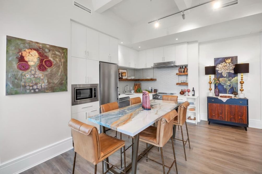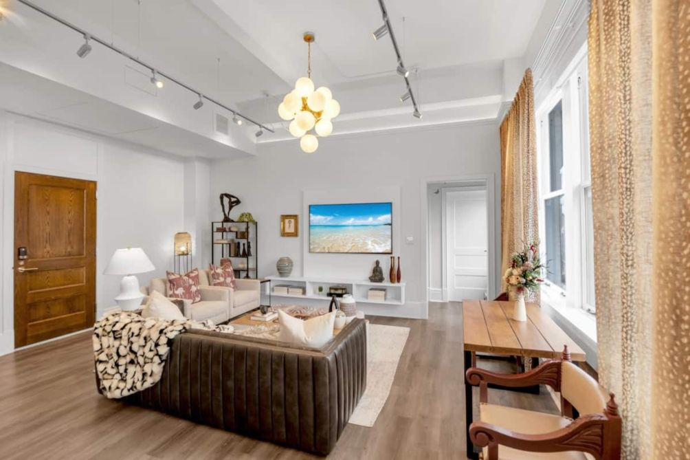 Step into the soul of downtown Pensacola at DeLuna Vista #310 — a stunning, designer-curated loft in the historic Brent Building. Soaring windows flood this living art gallery retreat with natural daylight, and panoramic views of vibrant Palafox Street. Walk to top restaurants, live performances, art galleries, and coffee shops — or take in the scene from your stylish open-concept living space with a chef’s kitchen, luxe furnishings, and smart home touches.
