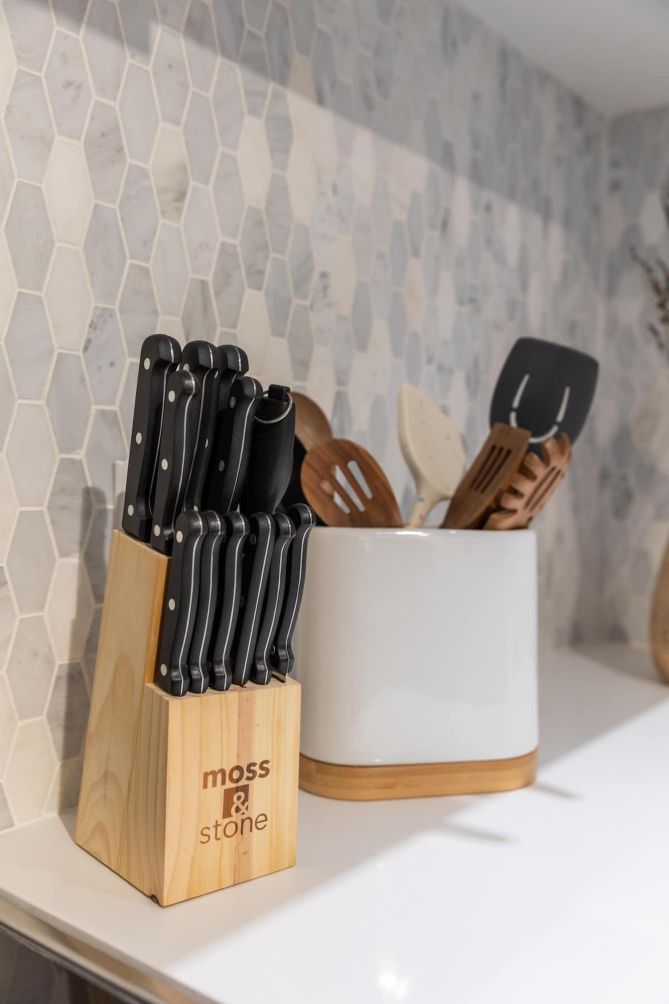 - Gourmet Ready: A dual coffee maker and a fully stocked kitchen with premium cookware, dishes, pots, strainers, and more to elevate your culinary experience.