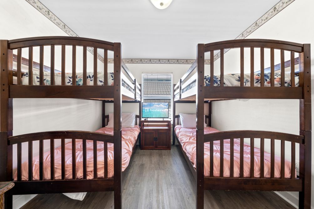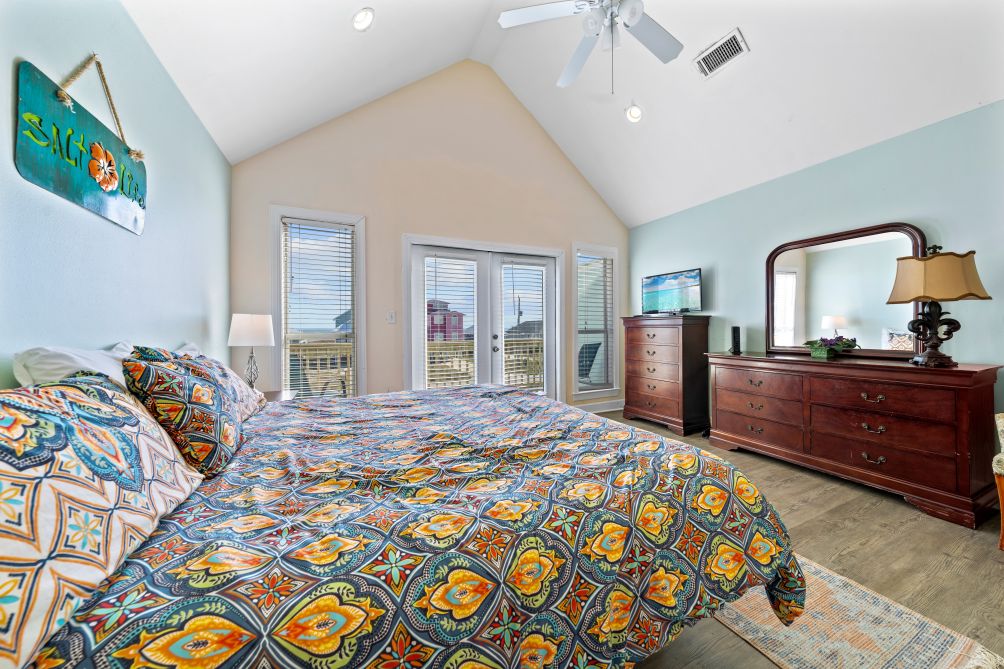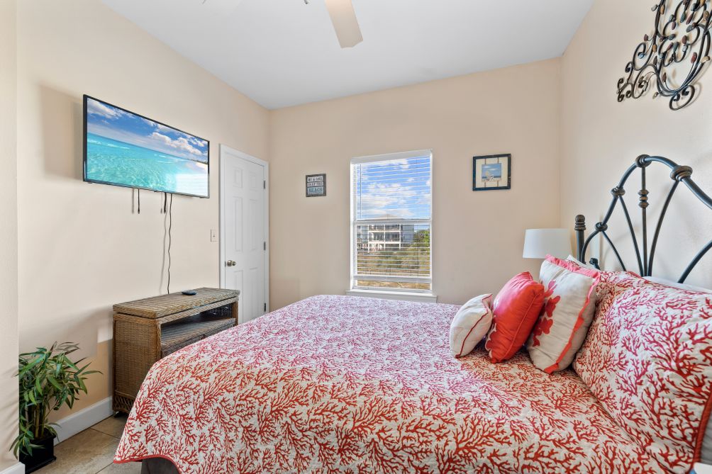 With three bedrooms and three bathrooms, Sea Watch comfortably accommodates up to ten guests. The master bedroom features a queen bed, a private en suite bathroom, and access to a secluded balcony through elegant double doors — the ideal place to enjoy a quiet morning coffee or a stunning sunset view. The second bedroom also includes a queen bed with its own en suite bathroom, while the third bedroom is designed with kids in mind, offering two bunk beds perfect for laughter and late-night stories. Each bedroom is equipped with a flat-screen TV for entertainment and relaxation.