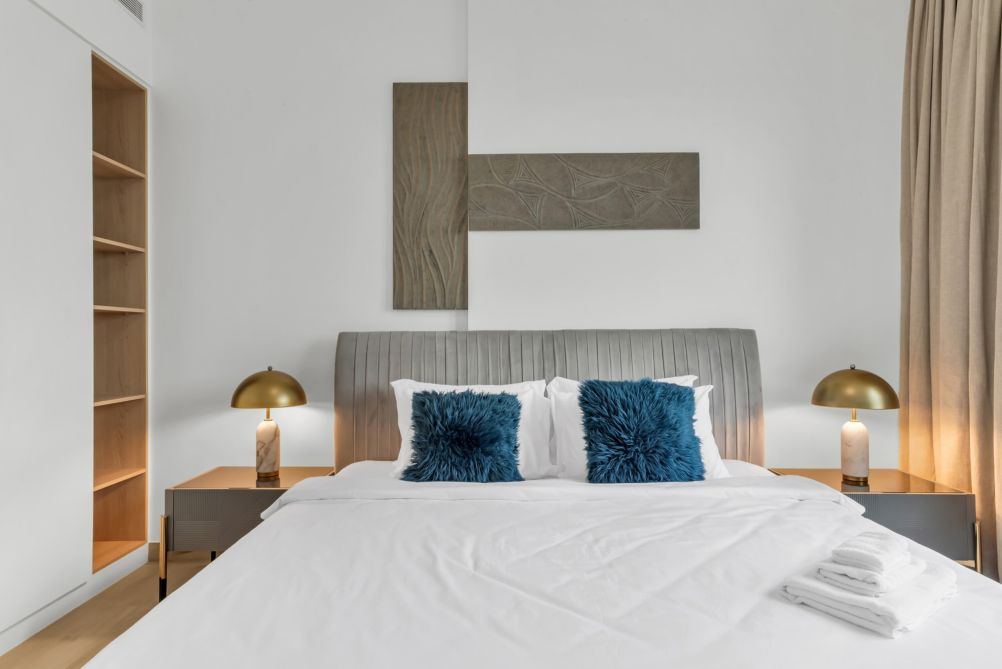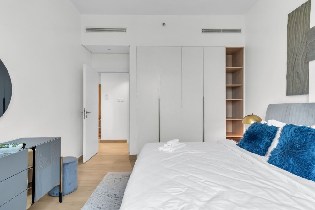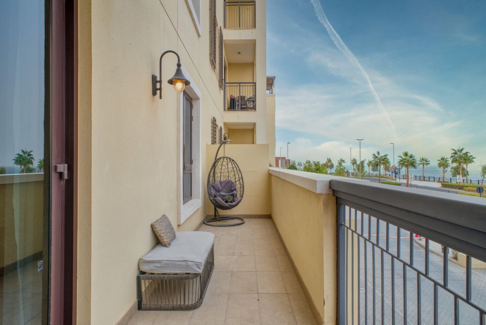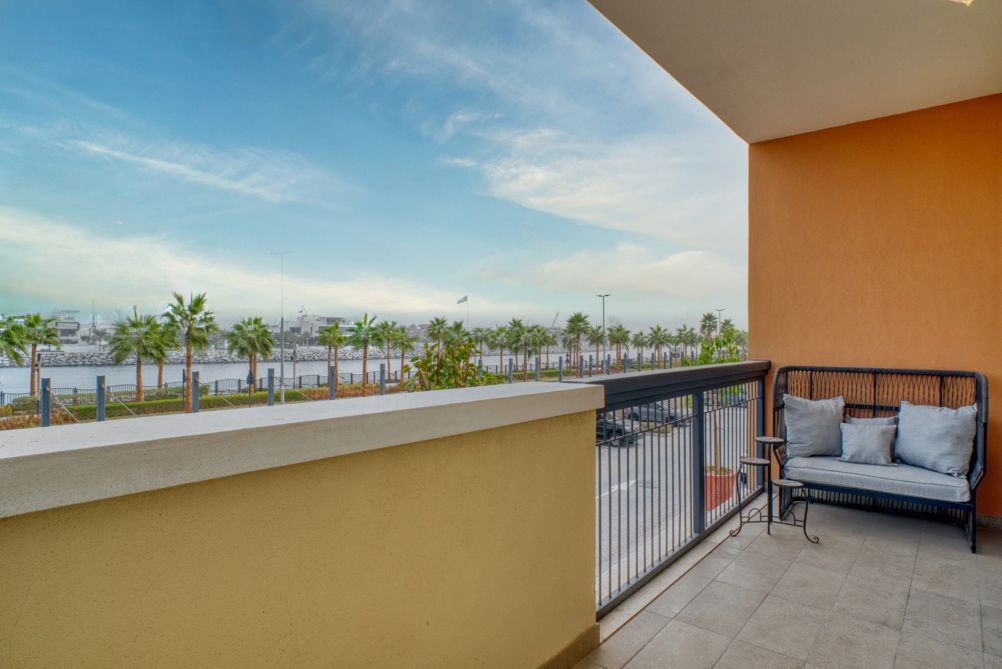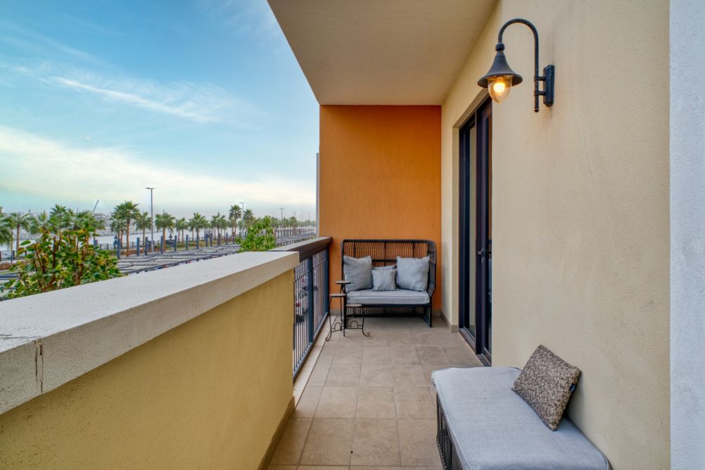 Welcome to La Cote, a serene retreat in the picturesque Port De La Mer, Dubai. This inviting condo offers a spacious bedroom with a king-sized bed, ensuring a restful stay. Step out onto the private balcony to savor the fresh sea air, or head to the shared outdoor pool for a refreshing swim. The pool area is perfect for lounging in the sun, providing a tranquil escape from the bustling city.