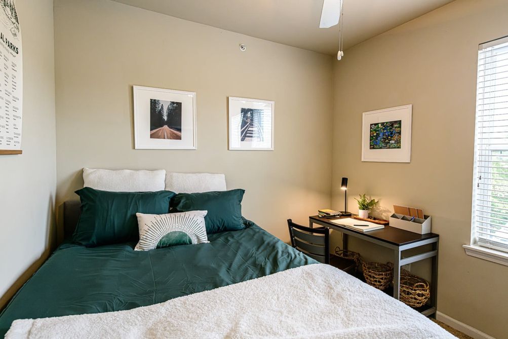 Outside, you’ll find a great selection of on-site amenities to enjoy: a swimming pool, hot tub, fitness center, basketball court, clubhouse with billiards and lounge areas, study spaces, computer center with printing, and a shuttle that takes you around town with ease.