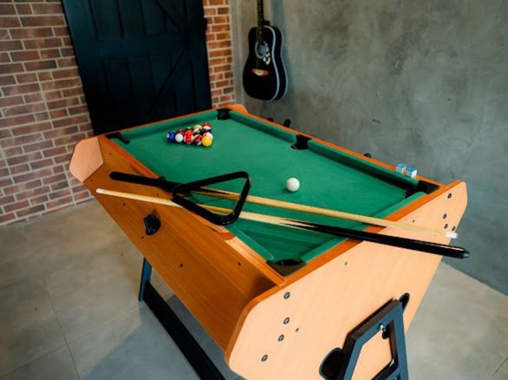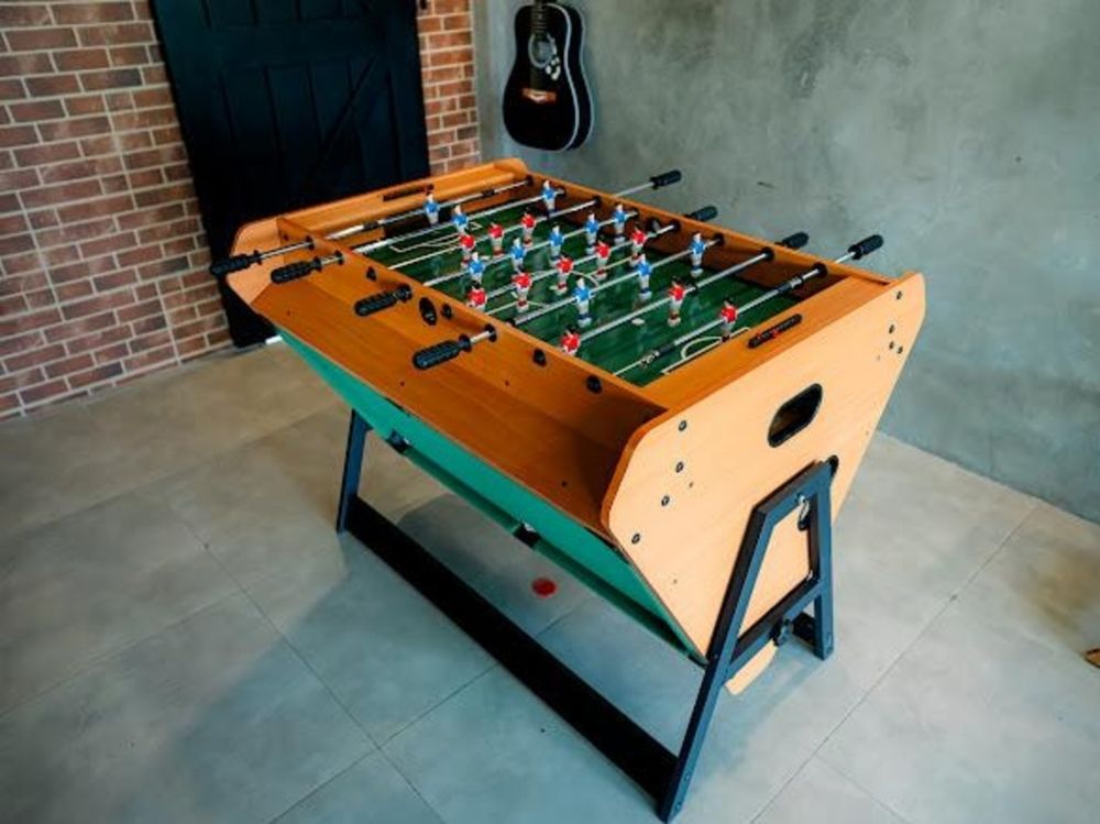 This spacious villa is perfect for large groups, comfortably hosting up to 15 guests. Inside, you’ll enjoy a roomy living area with a smart TV, plus fun games like foosball and a pool table. There’s also a laptop-friendly workspace for those who need to stay connected.