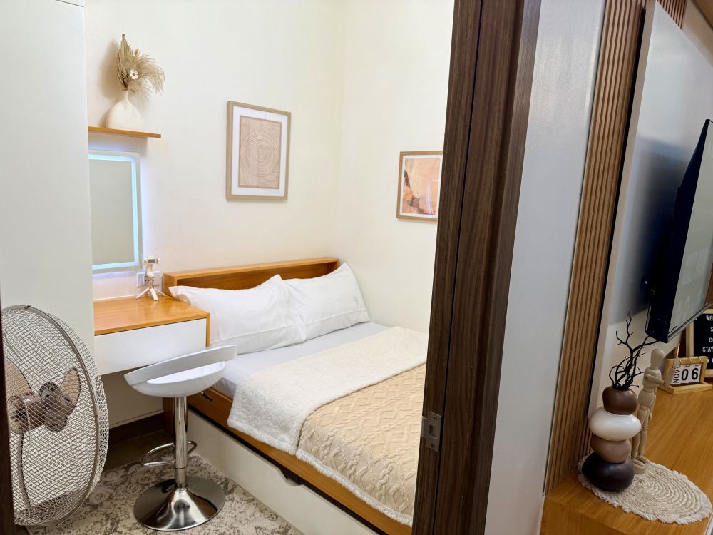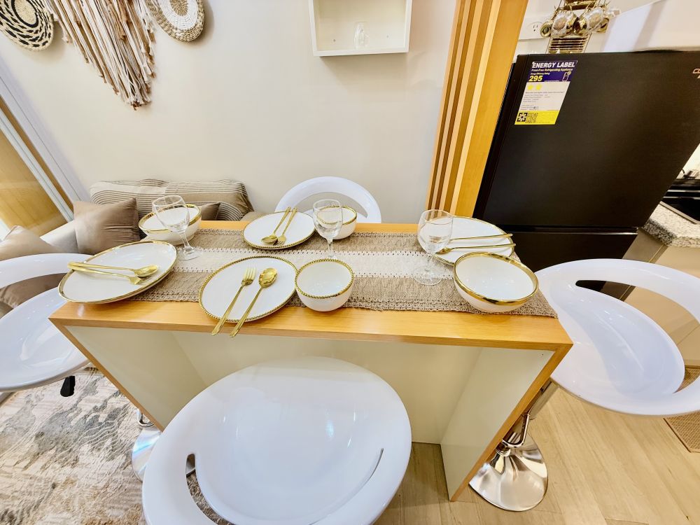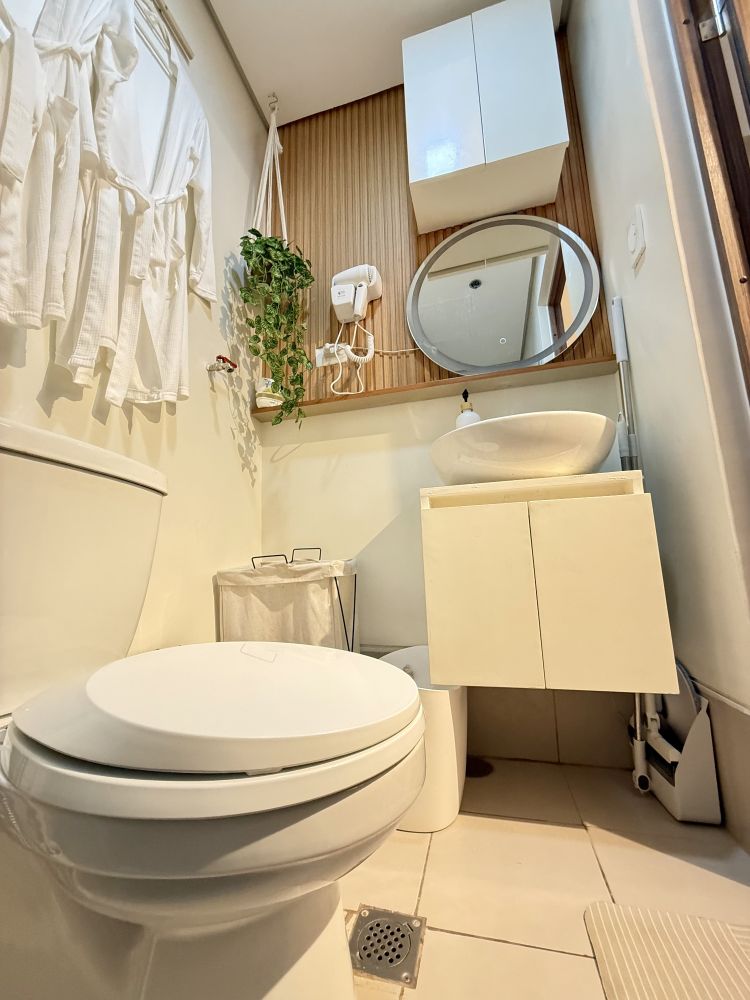 The condo is designed for comfort and functionality, with an equipped kitchenette that includes utensils, cookware, basic condiments, and essential appliances like an induction cooker, microwave, rice cooker, and refrigerator. The bathroom offers a hot and cold shower, bidet, lighted mirror, hair dryer, toiletries, and a first-aid kit. Guests also enjoy fast Wi-Fi, fresh linens and towels, cleaning items, tripods for content creation, entertainment options such as board games and karaoke, and a smooth, secure check-in process.
