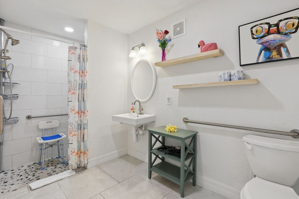 No ocean view from the Cottage but you will have private beach access without having to cross A1A! We also provide beach towels, chairs, umbrellas, and toys for the kiddos!