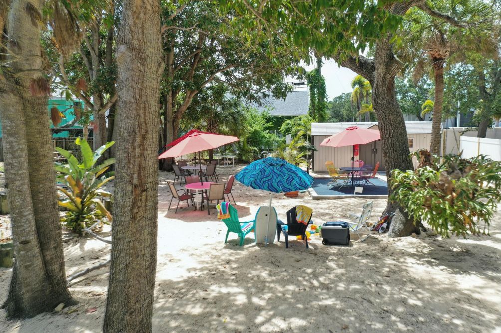 The downstairs backyard is our shared outdoor garden area with lounge chairs, tables, and hammocks for relaxing in the shade. WE provide all towels, linens, beach chairs, beach towels, and umbrellas. Just bring your bathing suit!