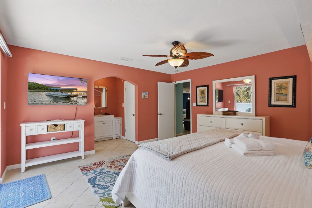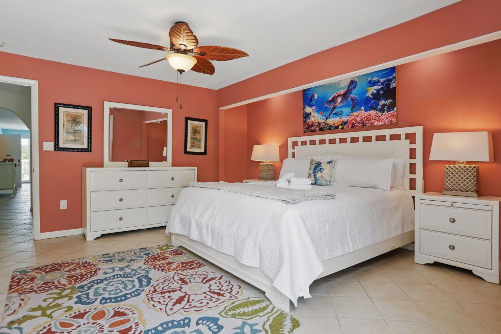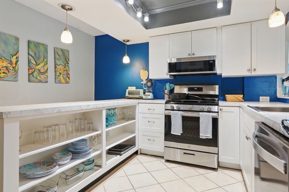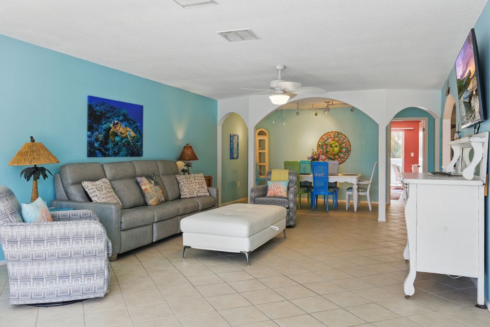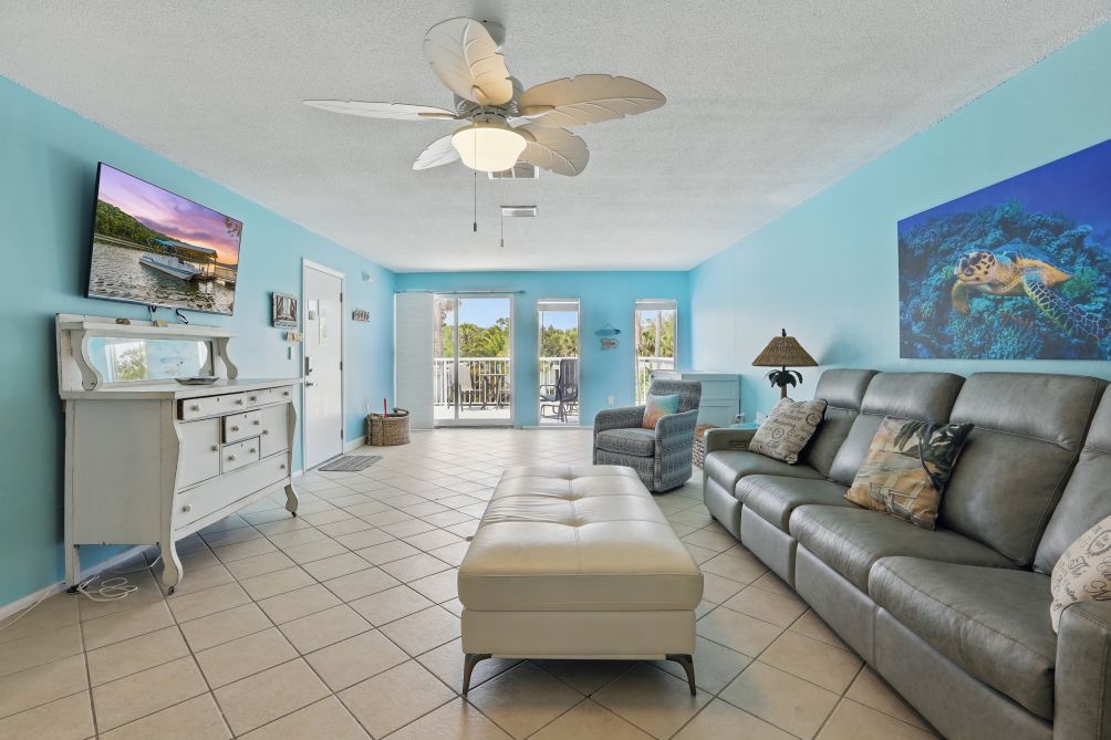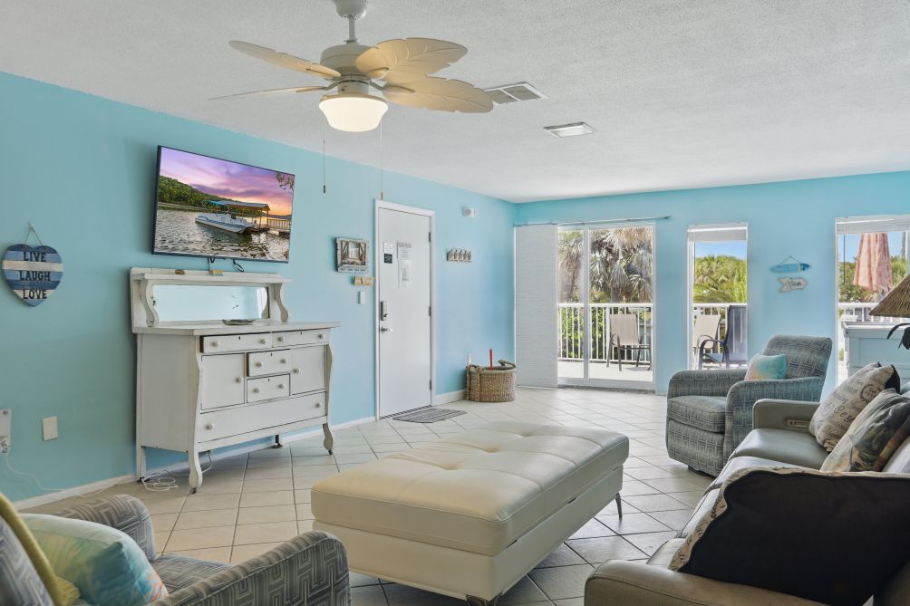 Newly furnished with everything to make your stay comfortable; Villa #21 has large tile throughout the entire home, updated kitchen appliances, countertop bar space, a large dining room table, and custom Italian leather sofa.