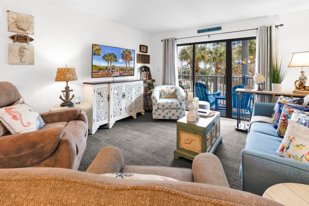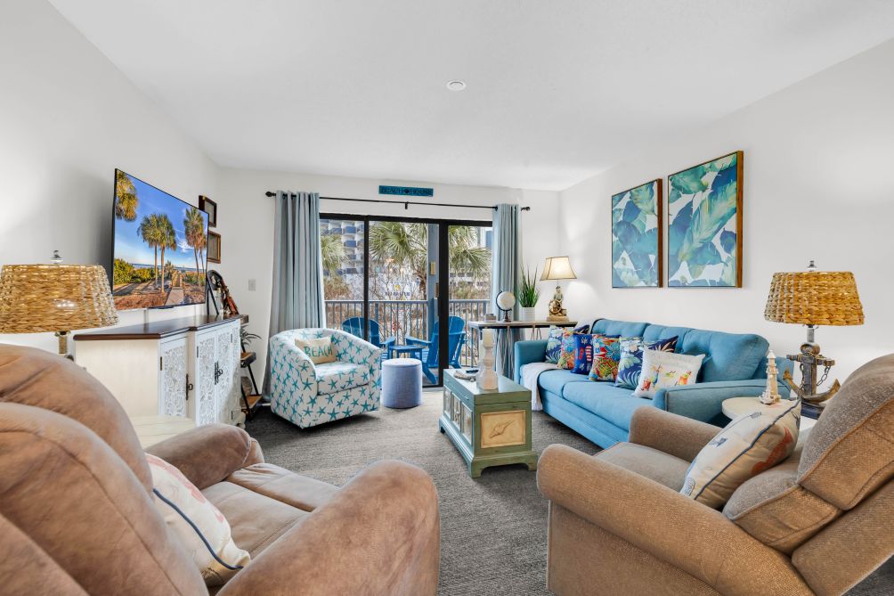 Discover Bluewater Resort V110A, an inviting retreat perfectly positioned in the heart of Myrtle Beach, just moments from the shoreline. This condo offers a serene escape with a private balcony—perfect for enjoying your morning coffee, tea, or simply unwinding in the fresh sea air. Inside, you’ll find a Smart TV, a fully equipped kitchen, and comfortable living and dining spaces designed for relaxation.
