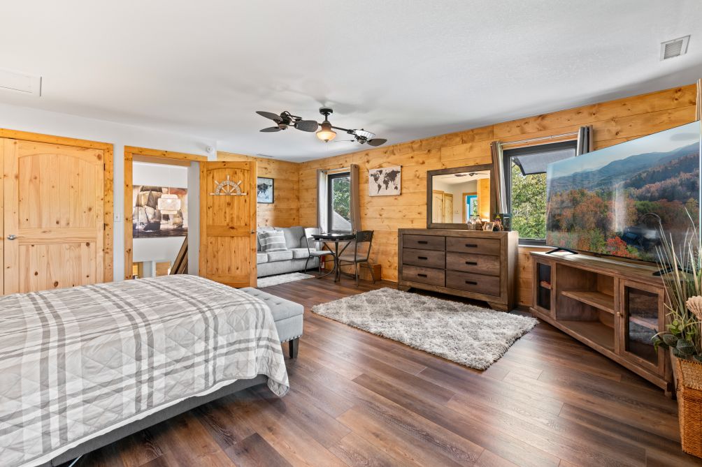 Escape to Captain John’s Place, a beautifully remodeled waterfront retreat located just minutes from the Pigeon Forge strip yet tucked away on its own peaceful pond. This spacious four-bedroom, four-bath getaway blends upscale renovation, classic Smoky Mountain charm, and family-friendly comfort—all on a rare piece of private waterfront land.