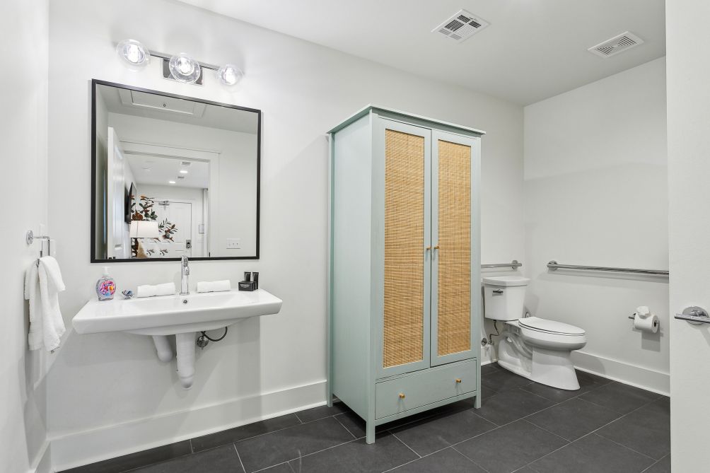 Welcome to our Magnolia-Themed ADA Accessible Room, designed for comfort and style. Enjoy a plush king-size bed with premium linens and accessible features for ease of use. The room includes ADA-compliant elements such as wide doorways, an accessible bathroom with a roll-in shower, grab bars, a built-in bench, and an accessible sink and toilet. Soft, warm tones inspired by magnolia blossoms create a relaxing, luxurious atmosphere, ensuring a comfortable and convenient stay for all guests.
