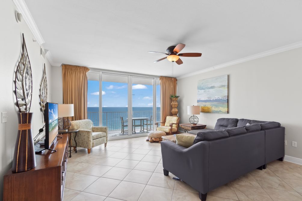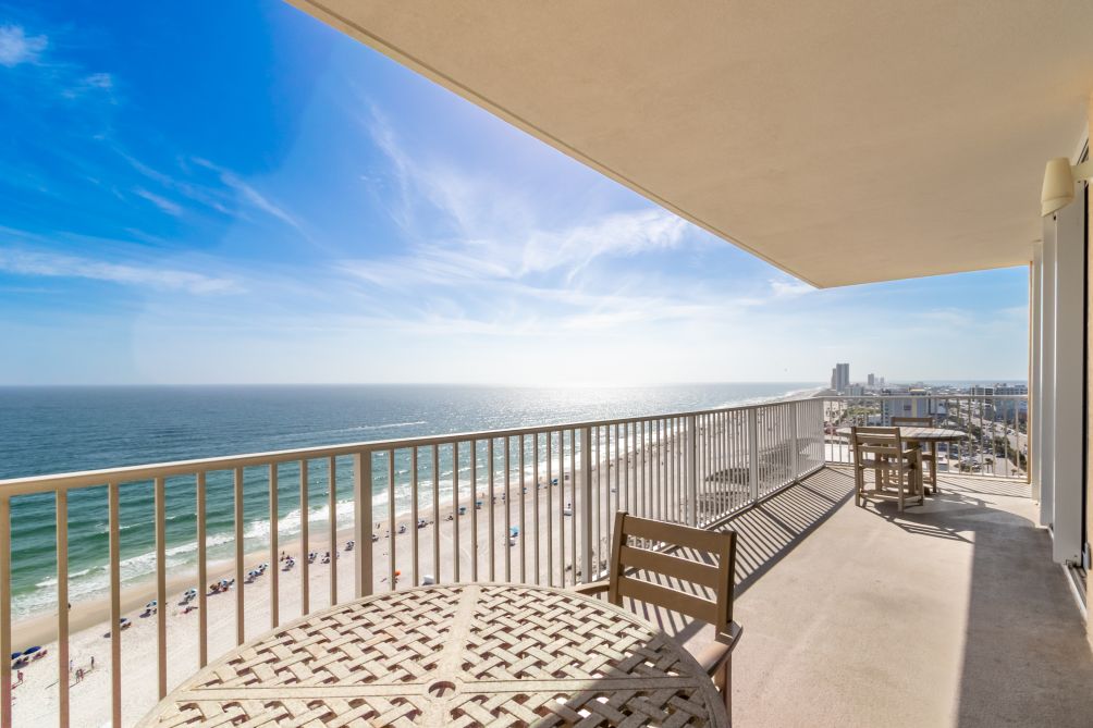 Welcome to San Carlos 1509, a spectacular west-end, corner Gulf-front condo nestled in the vibrant heart of Gulf Shores, AL. Revel in the breathtaking panoramic floor-to-ceiling views of the Gulf of Mexico, enhanced by a recent full update that introduces fresh furniture, paint, and décor, creating an inviting and modern atmosphere.
