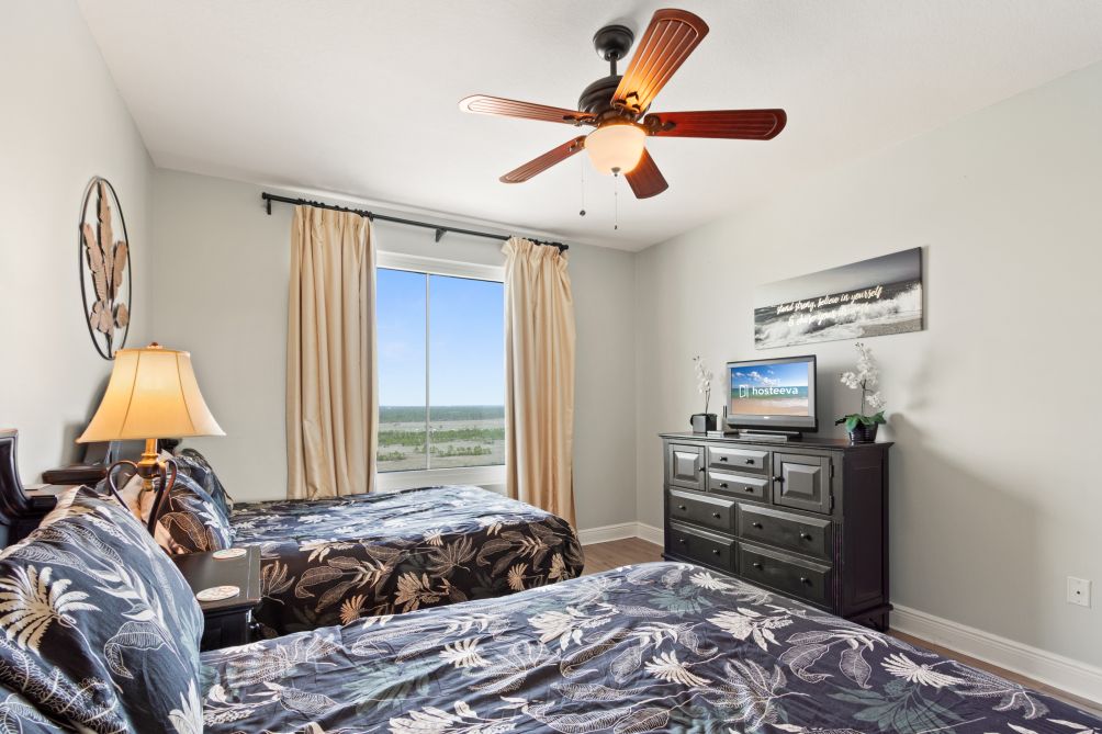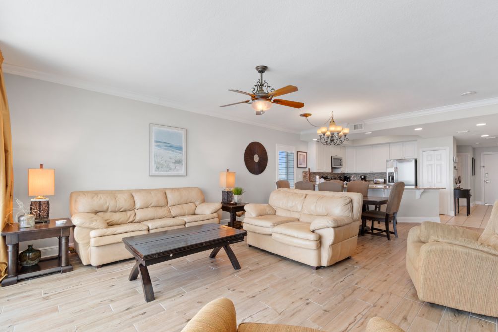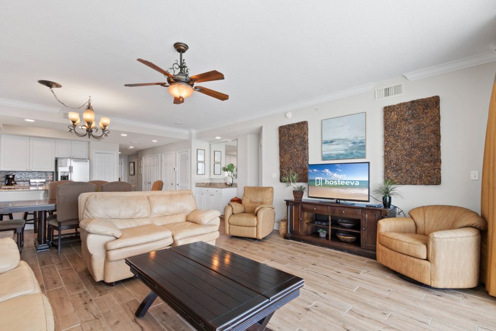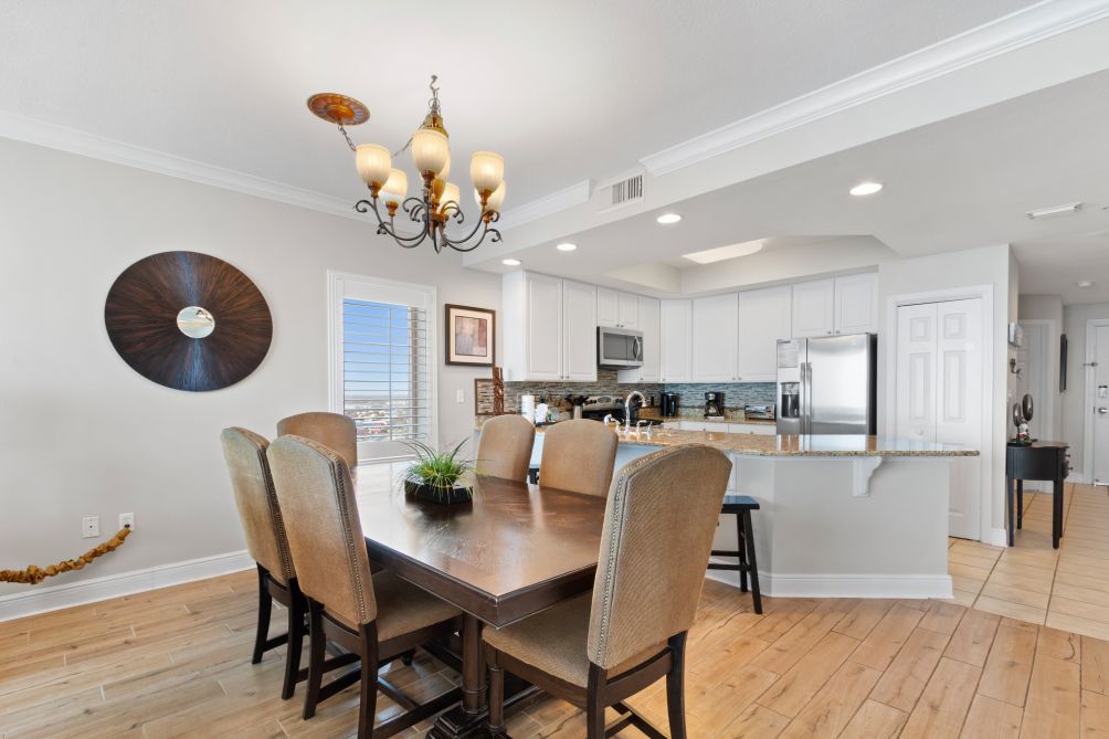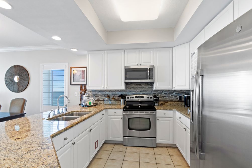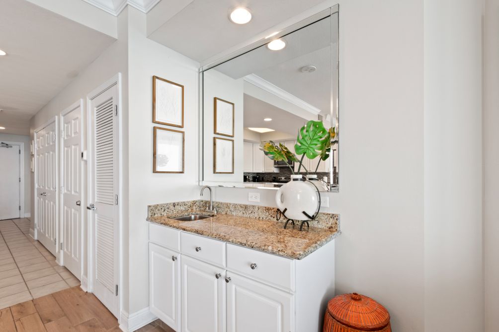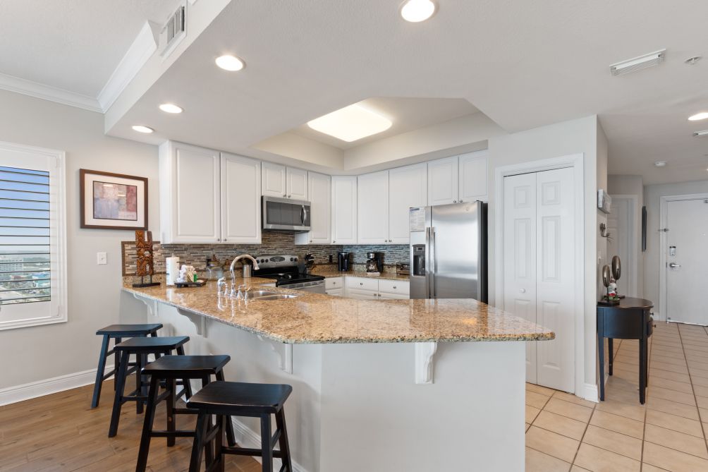 The fully equipped kitchen, featuring granite countertops and a wet bar with an ice maker, is perfect for preparing meals or entertaining guests. The primary suite offers balcony access, while two additional guest suites ensure comfort and privacy, making this corner unit an ideal setting for unforgettable beach vacations with family and friends.